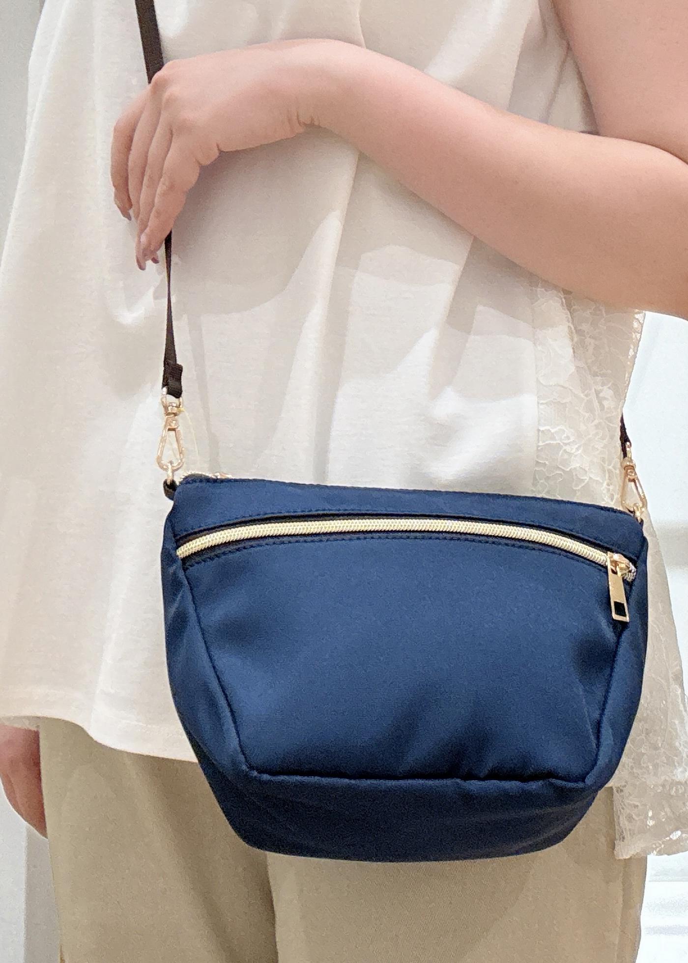 ショルダー紐の長さ調節はできない為、肩から斜めがけがおすすめです。 -