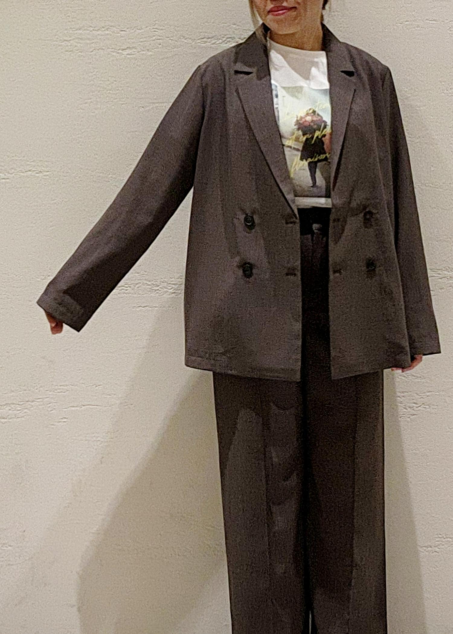ゆるっと羽織れるオーバーサイズのジャケットとワイドパンツのセットアップコーデ!