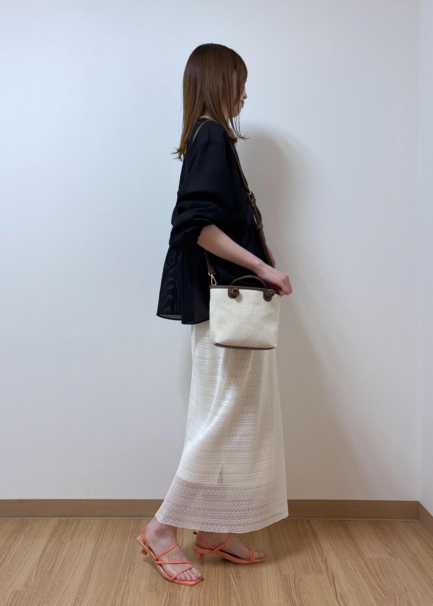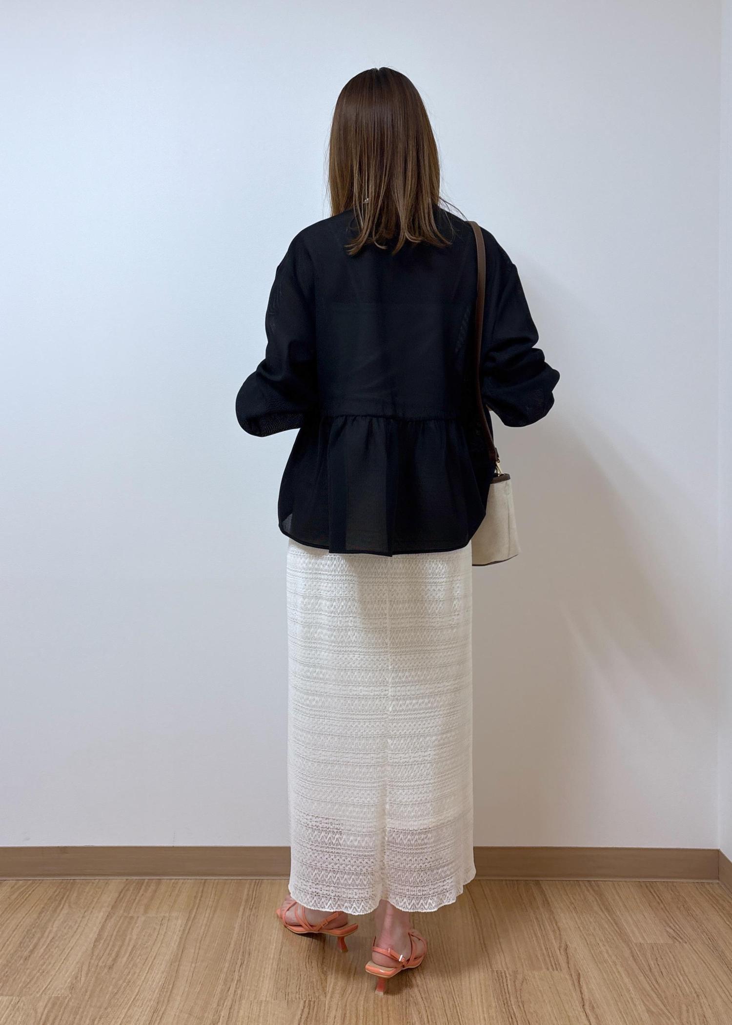 露出少なめですが、レース素材とメッシュ素材なので重くならず、抜け感のあるスタイリングになります。
