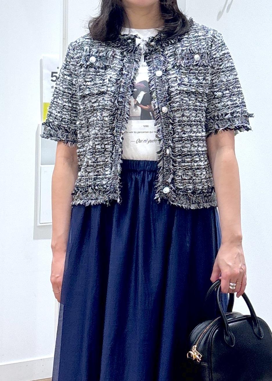 ROPÉ PICNIC【サマー・ツイード】ハーフスリーブカーディガンブラック系 / 38¥5,489レビューツイードジャケットに見えますが、ざっくりとした素材のカーディガンなので、見た目よりもかなり軽い着心地です。