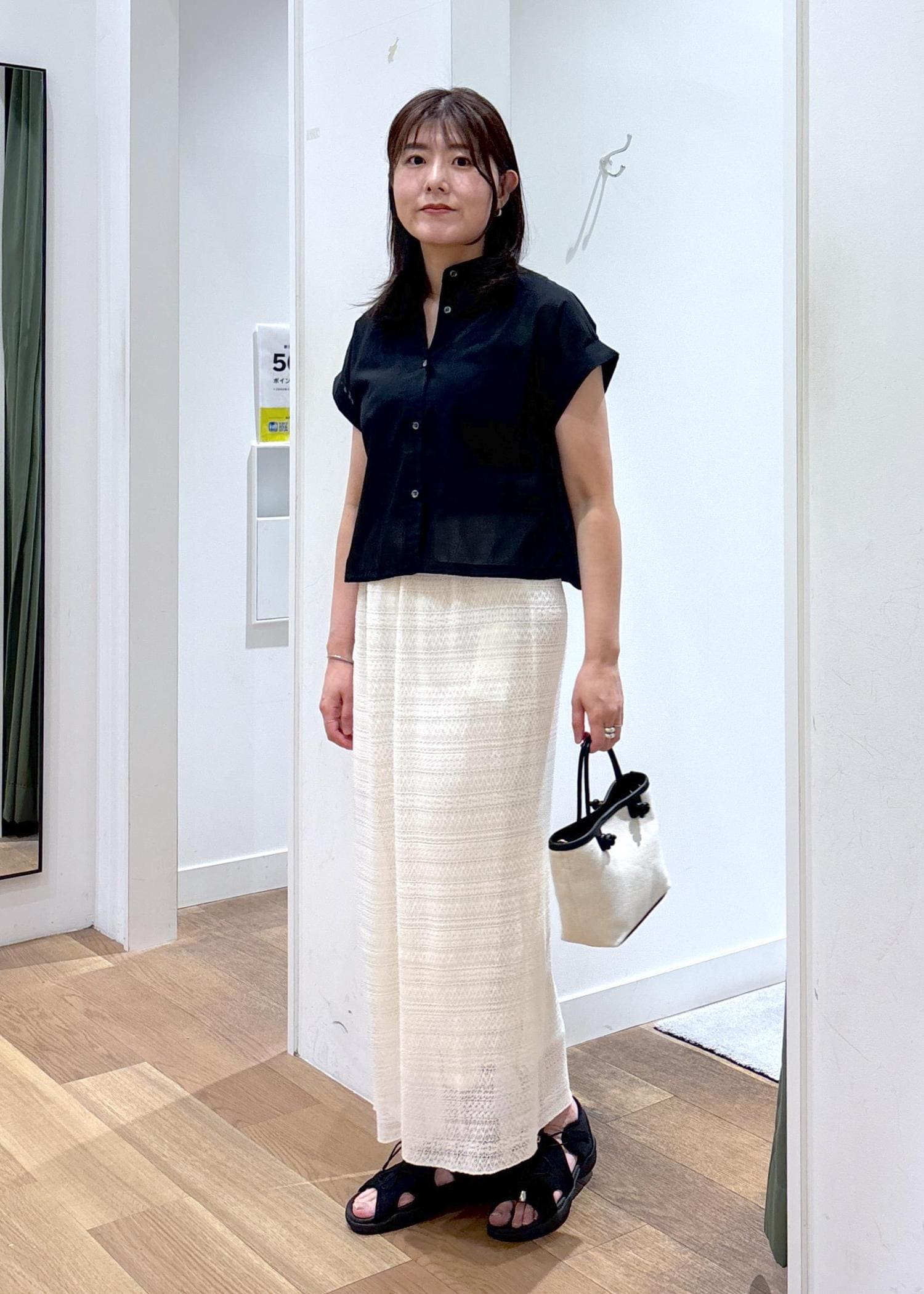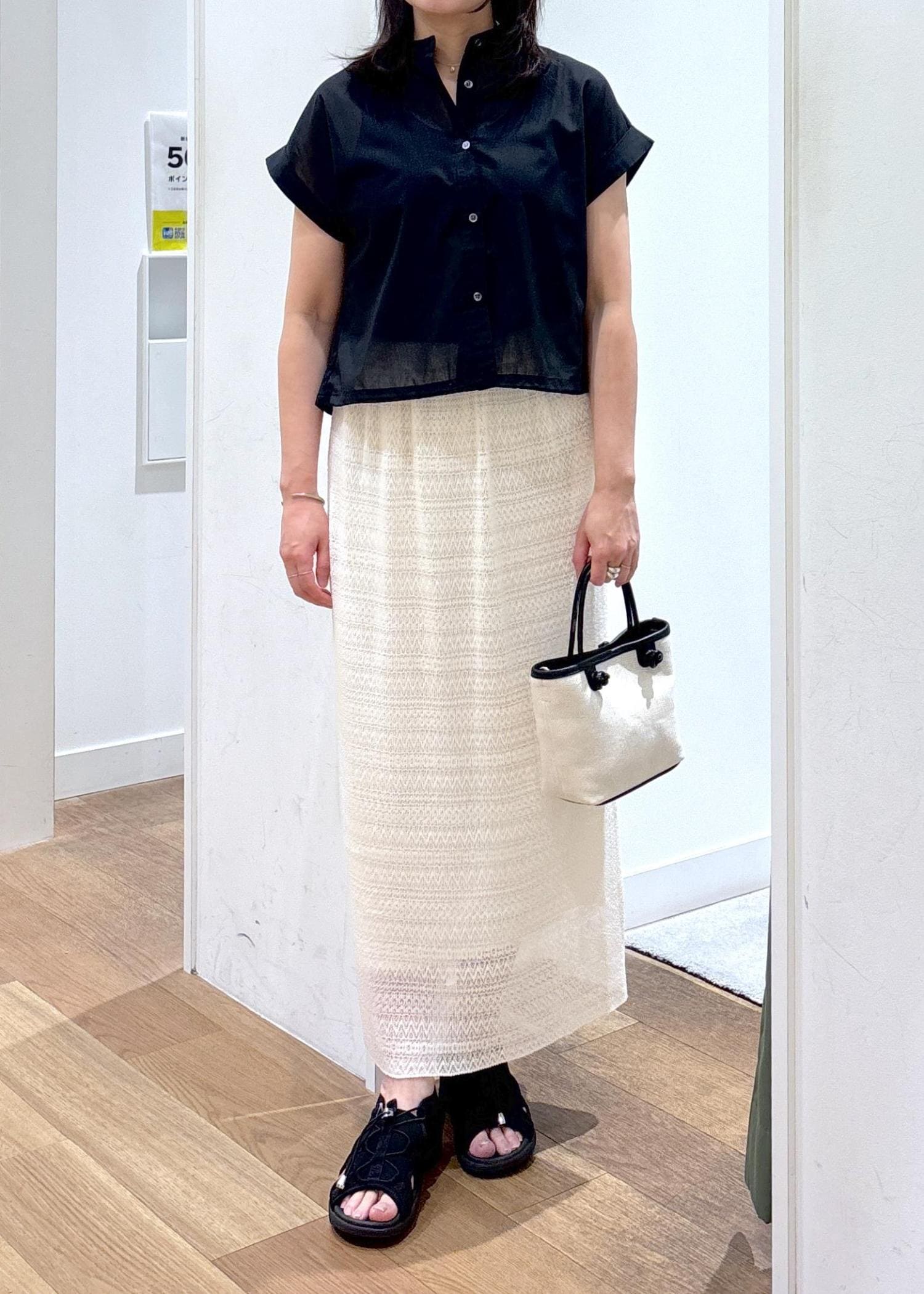 ROPÉ PICNICバルーンヘムシアーシャツブラック / 38¥4,499レビューシアーの透け感が軽やかなシャツです。