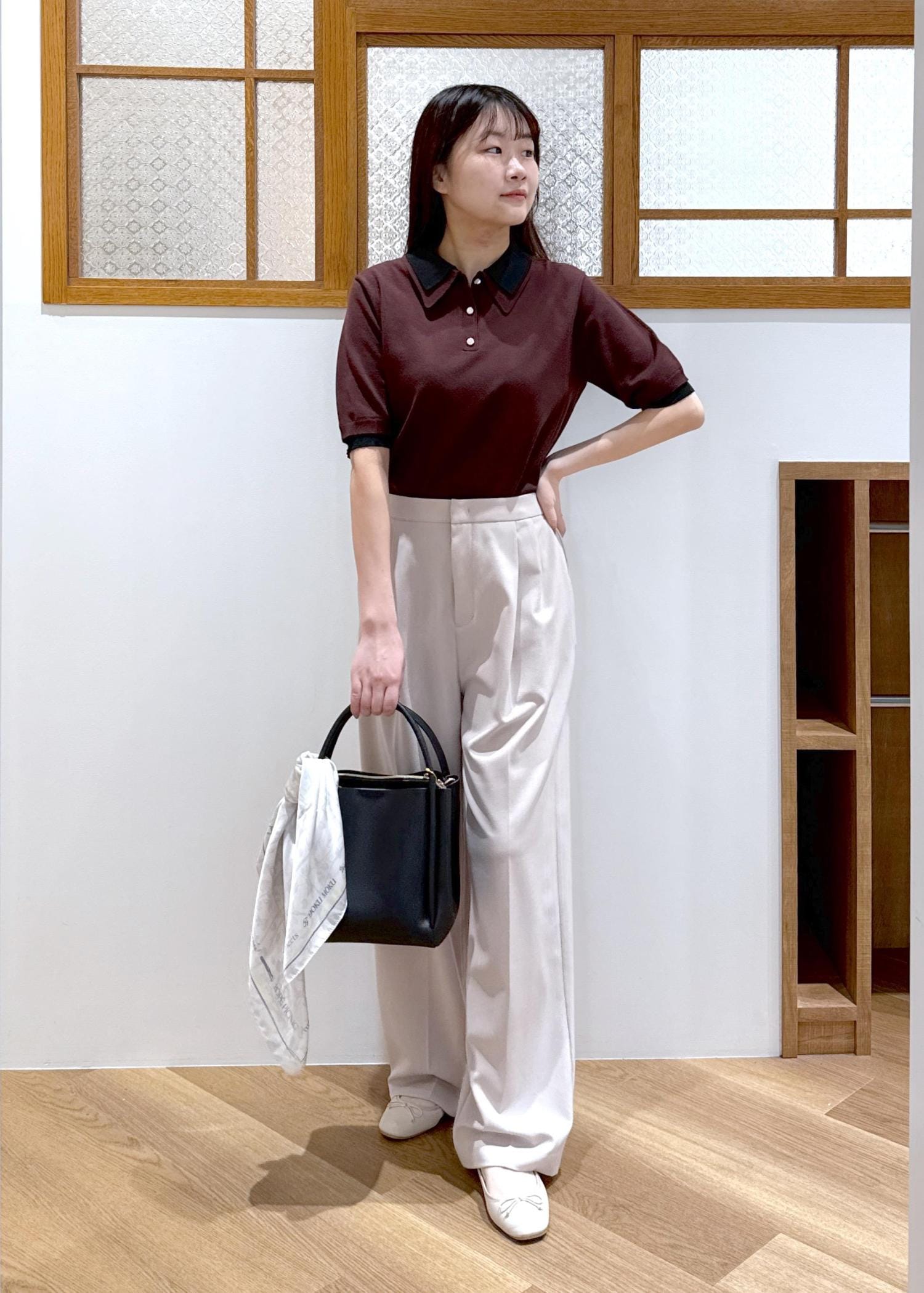 ワイドなシルエットですが、裾が広がりすぎないため綺麗めなコーデに合わせやすいです。