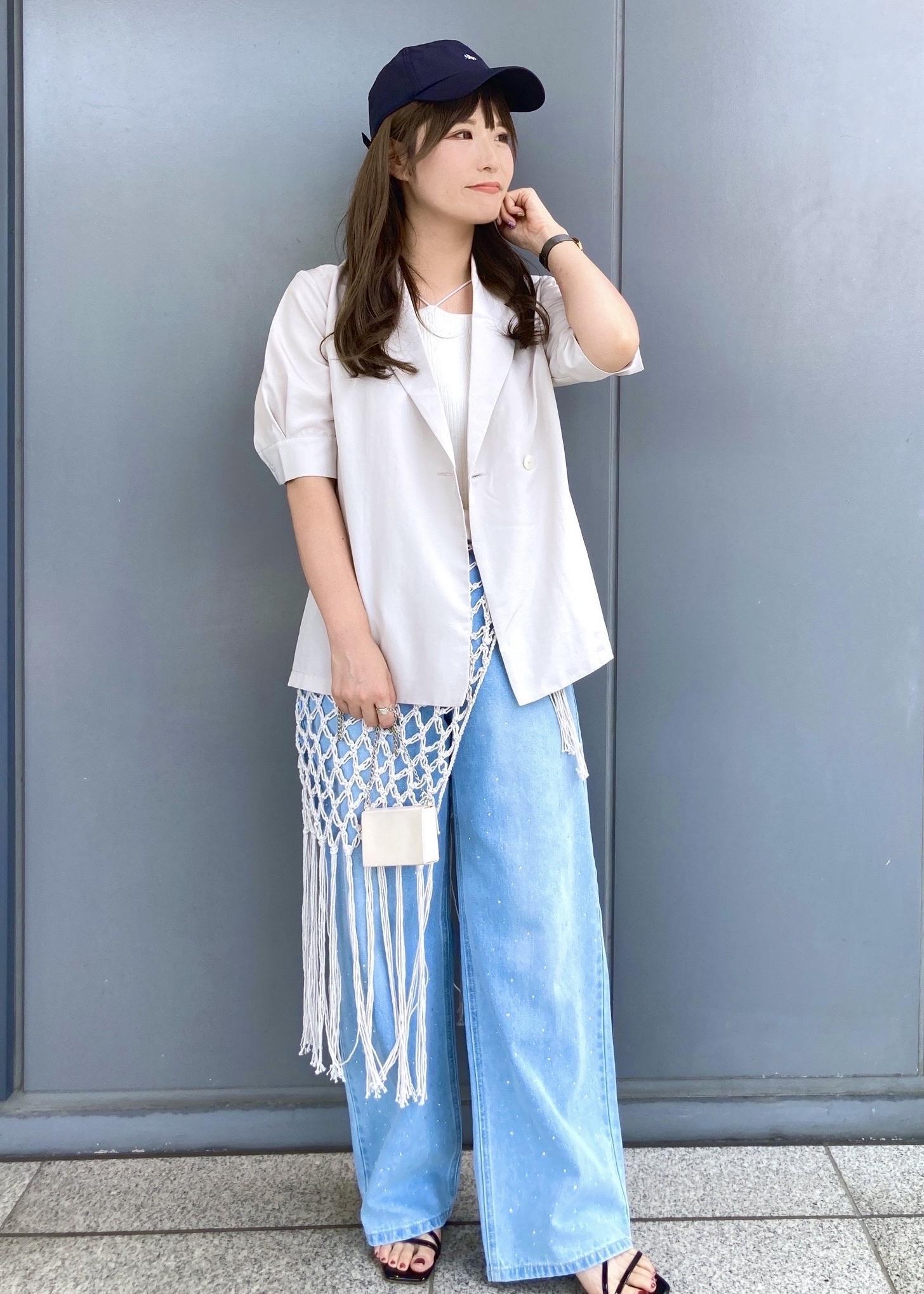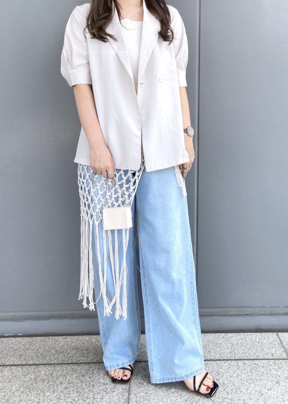 ・きらめくビジューを散りばめたゴージャスなデニムパンツ。
