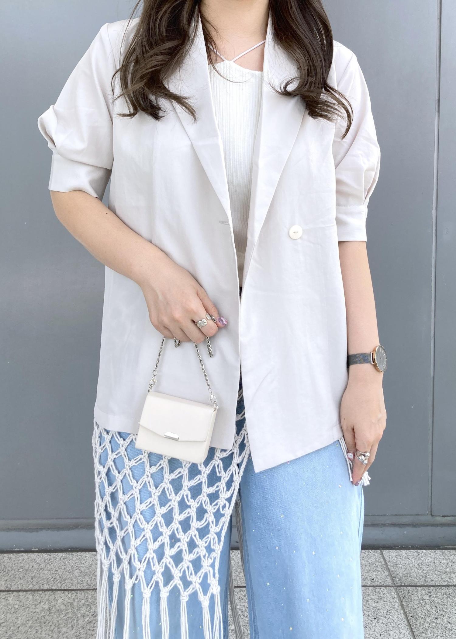 ・ゆったりサイズのジャケットをモチーフにした5分袖シャツ。