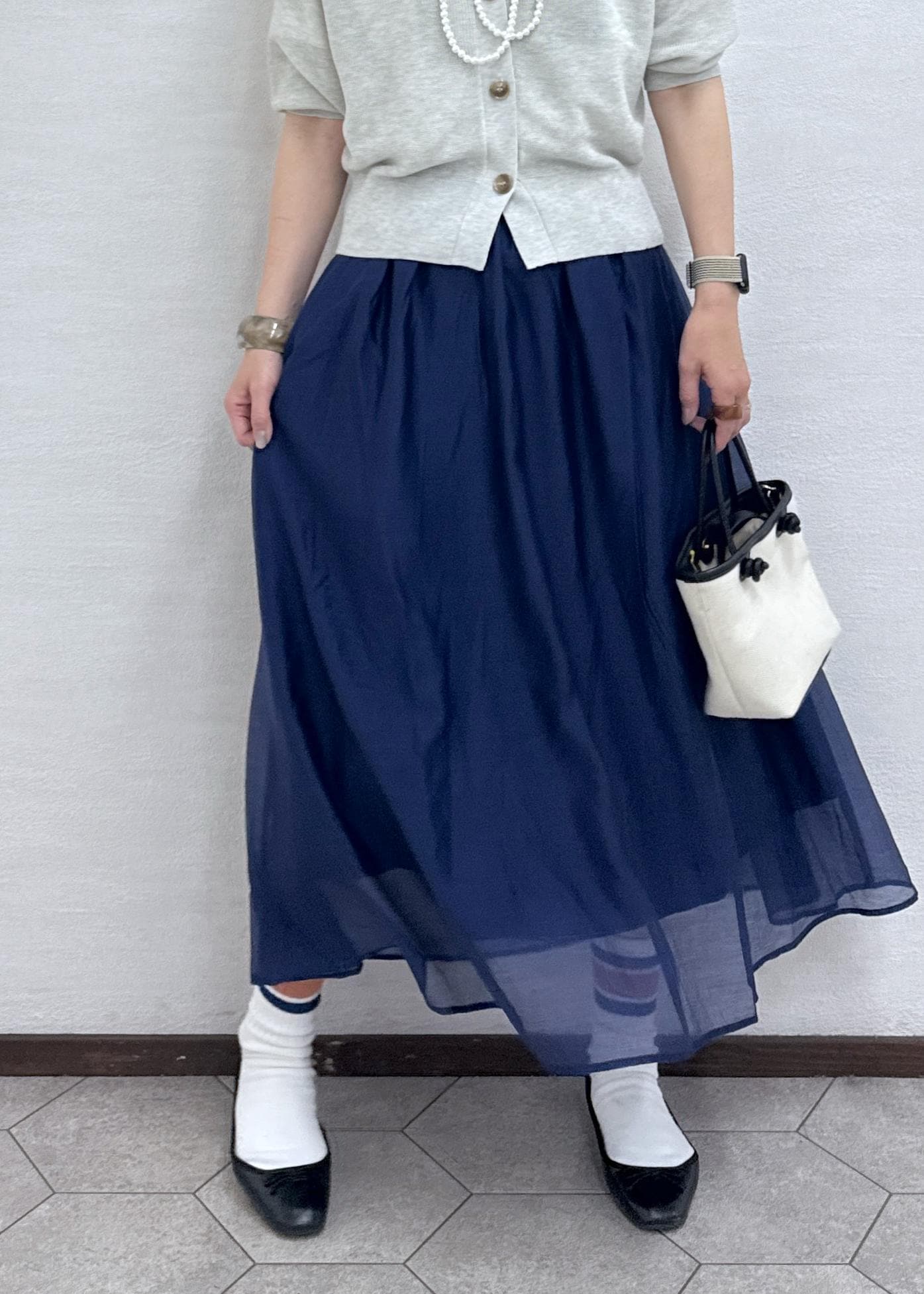 ROPÉ PICNICエアリーシアーギャザーロングスカートネイビー / 38¥6,490レビュー軽い質感でふんわりやわらか。見た目も涼しげなエアリーシアーロングスカート。ウエスト部分もゴム仕様なのでとても楽です。