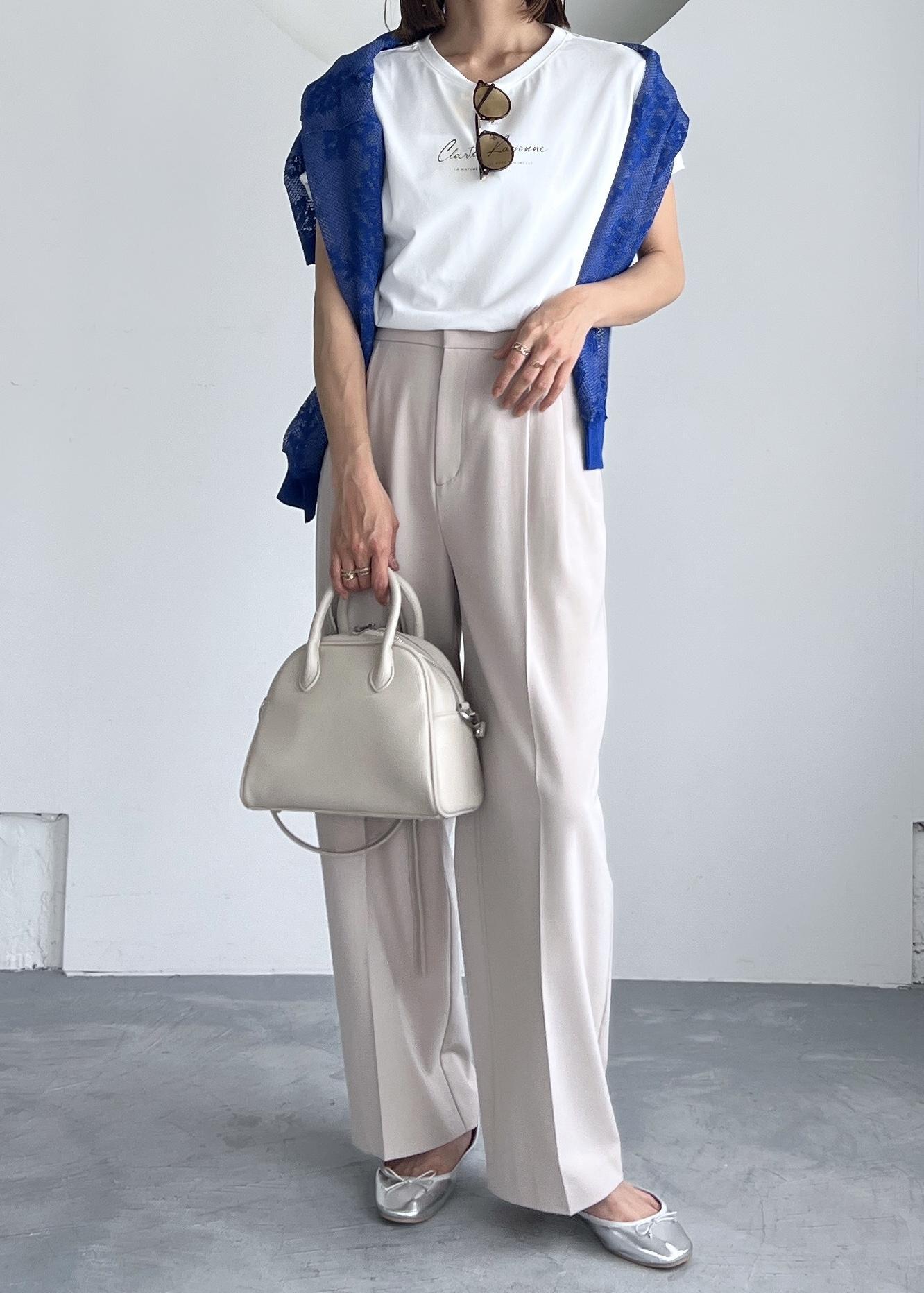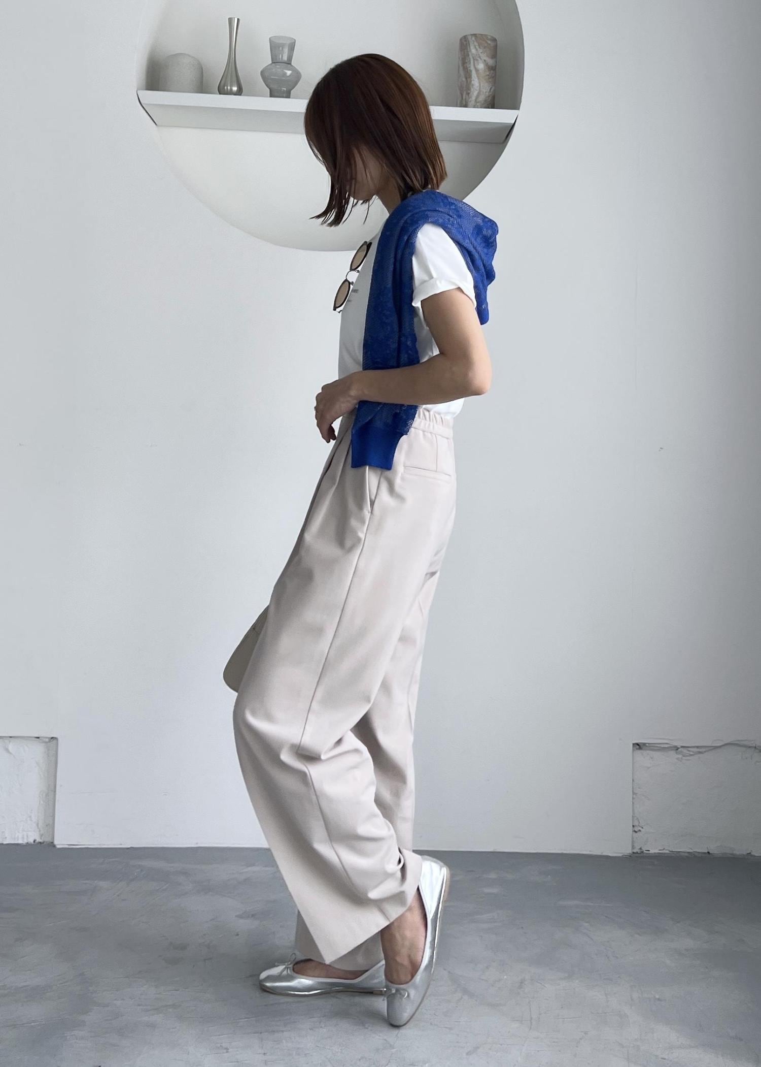 爽やかさのある夏のTシャツスタイルは、楽ちんなパンツ合わせでお出かけスタイルに。
