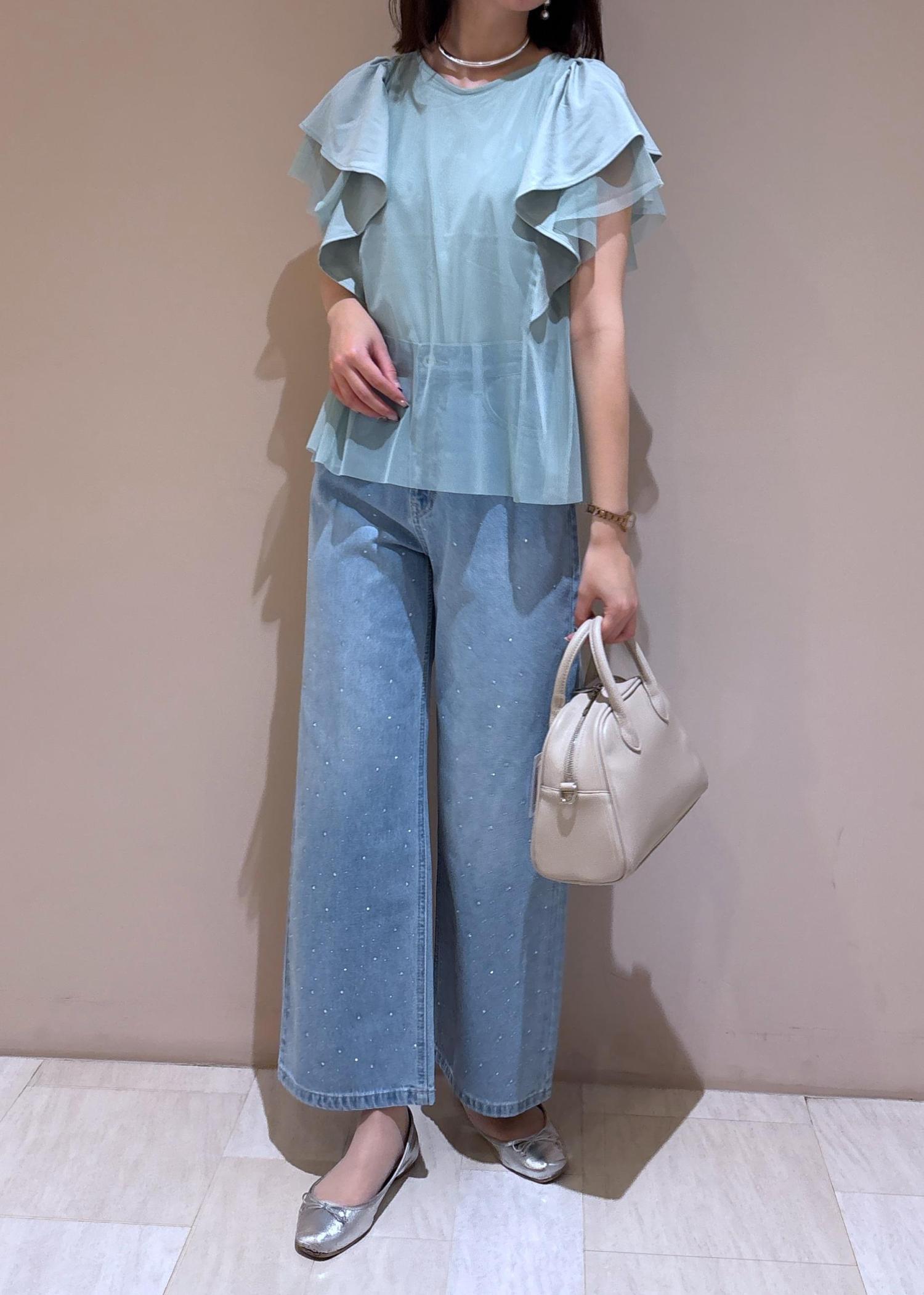 ROPÉ PICNIC【新色追加】キラキラビジューデニムブルー / 38¥7,491レビュー脚のラインを拾いにくいワイドシルエットのパンツです。