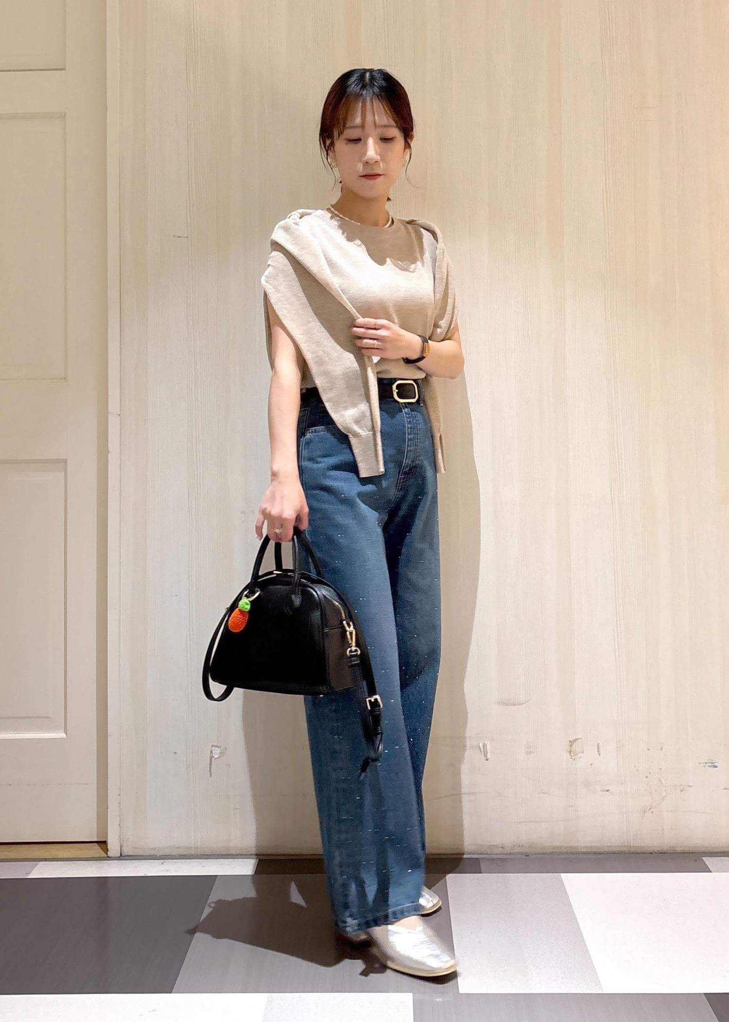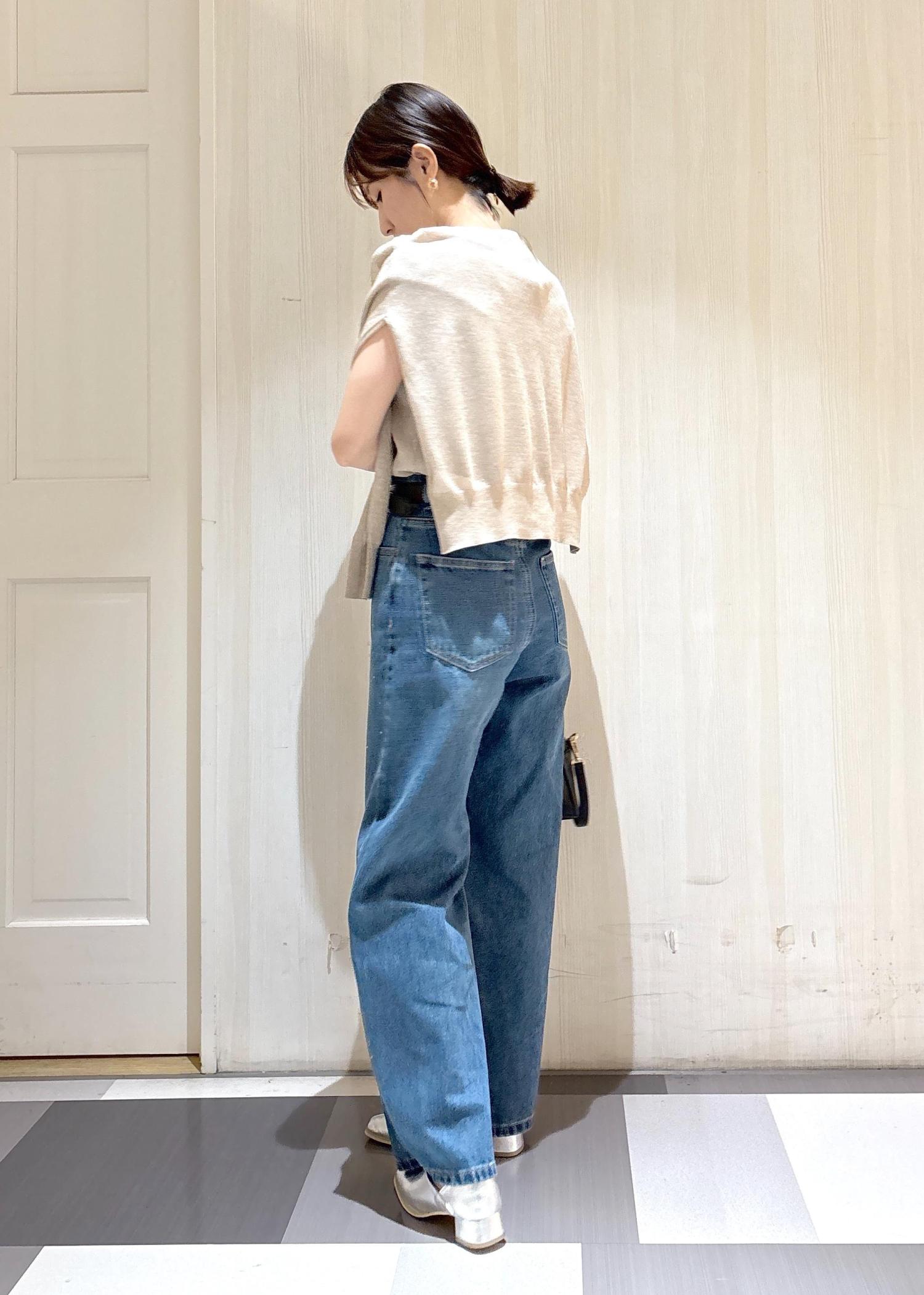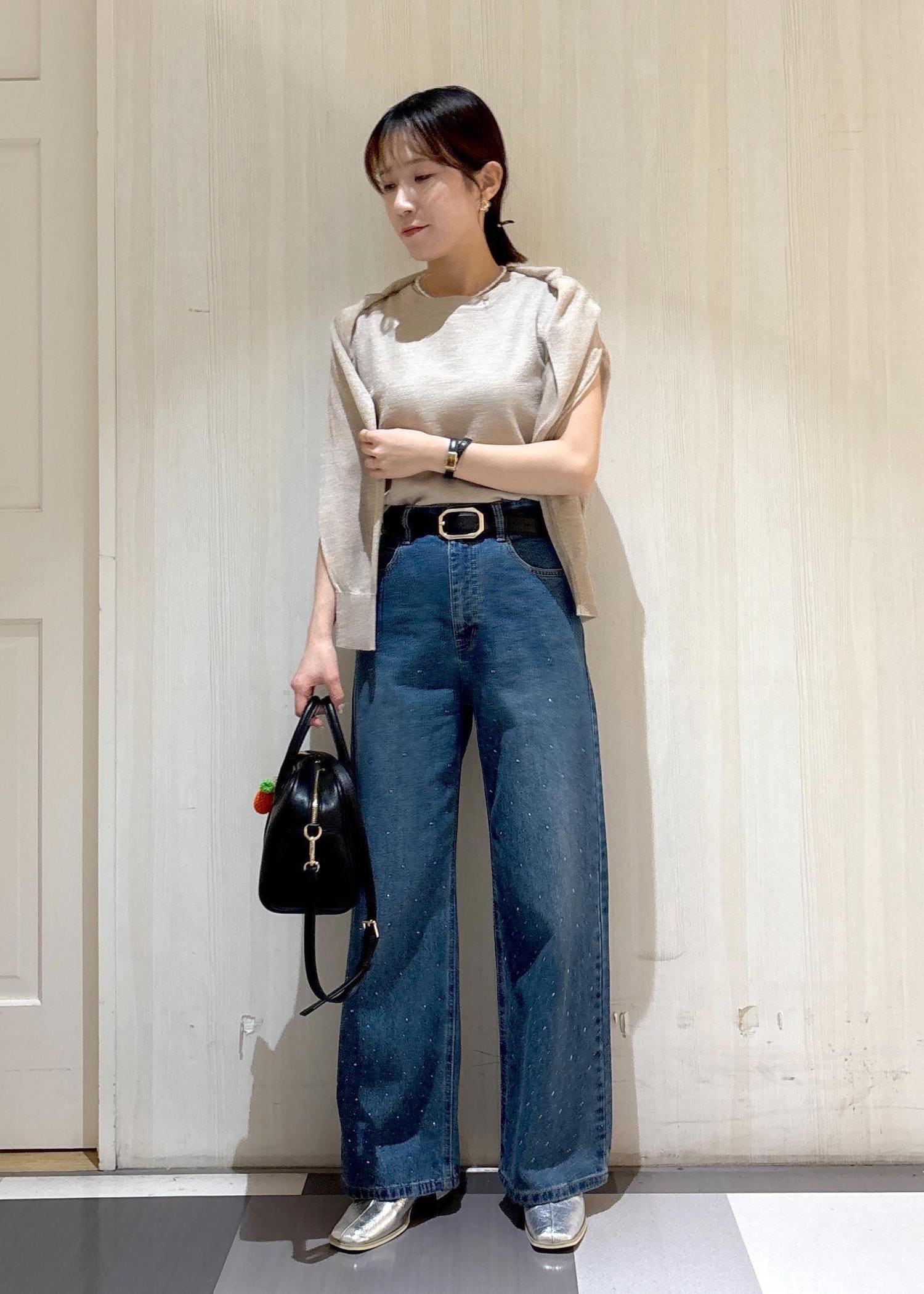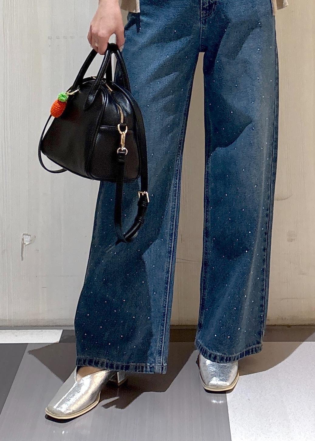 フロントのキラキラしたビジューがとても可愛いデニムです。