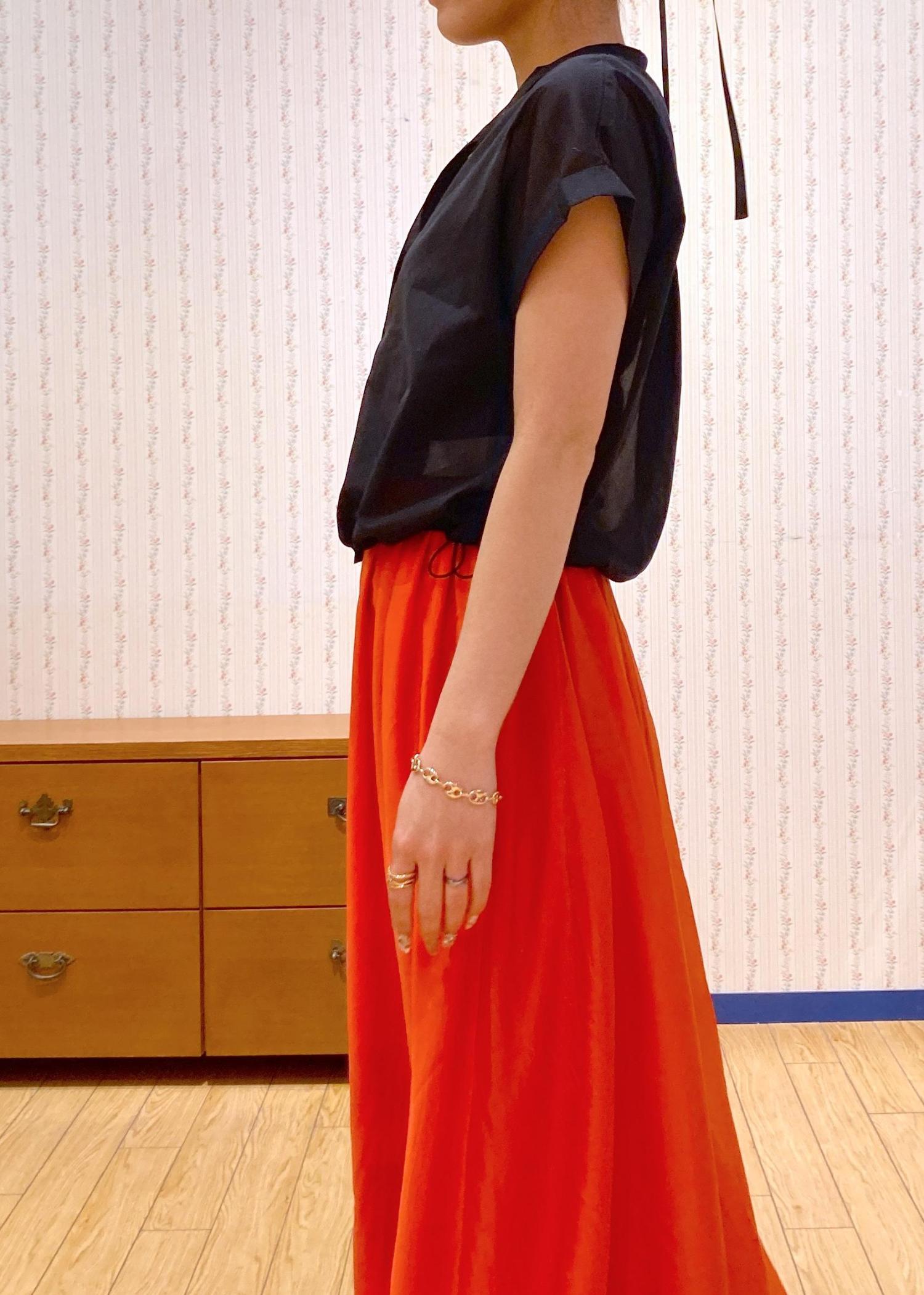 ふわっと柔らかく落ち感のある素材で、風が吹くと揺れるのが女性らしさ満点です。 -