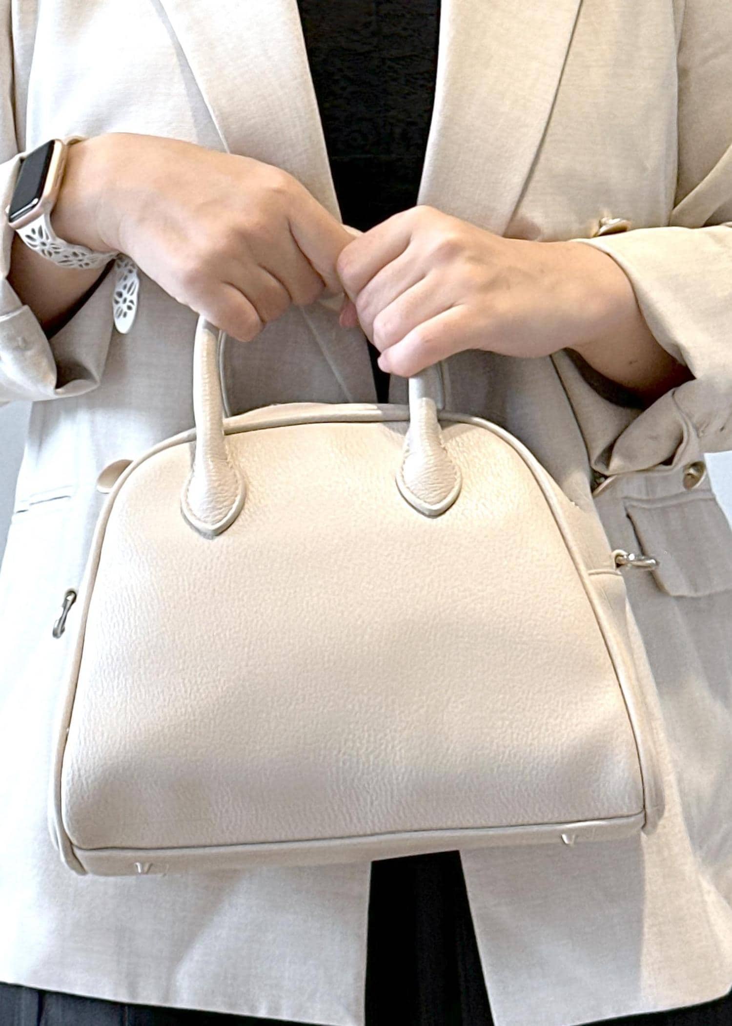 手持ちでもショルダーに掛けても可愛いバッグです。