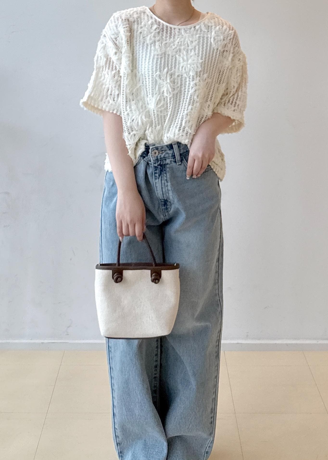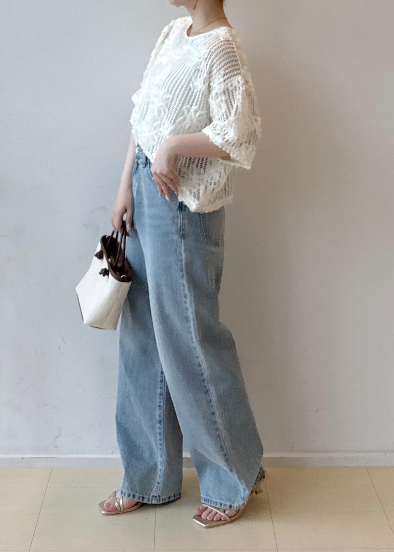 透け感のあるトップスに万能なデニムを合わせた