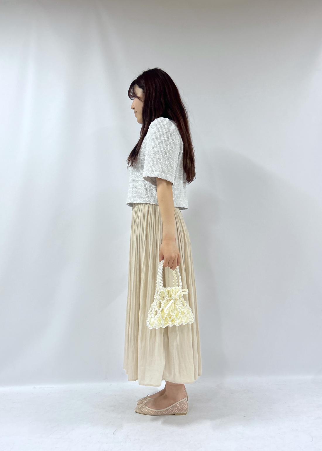 白でも同じ白ではなかったり、バックやシューズにパールがありアクセントになってくれています!