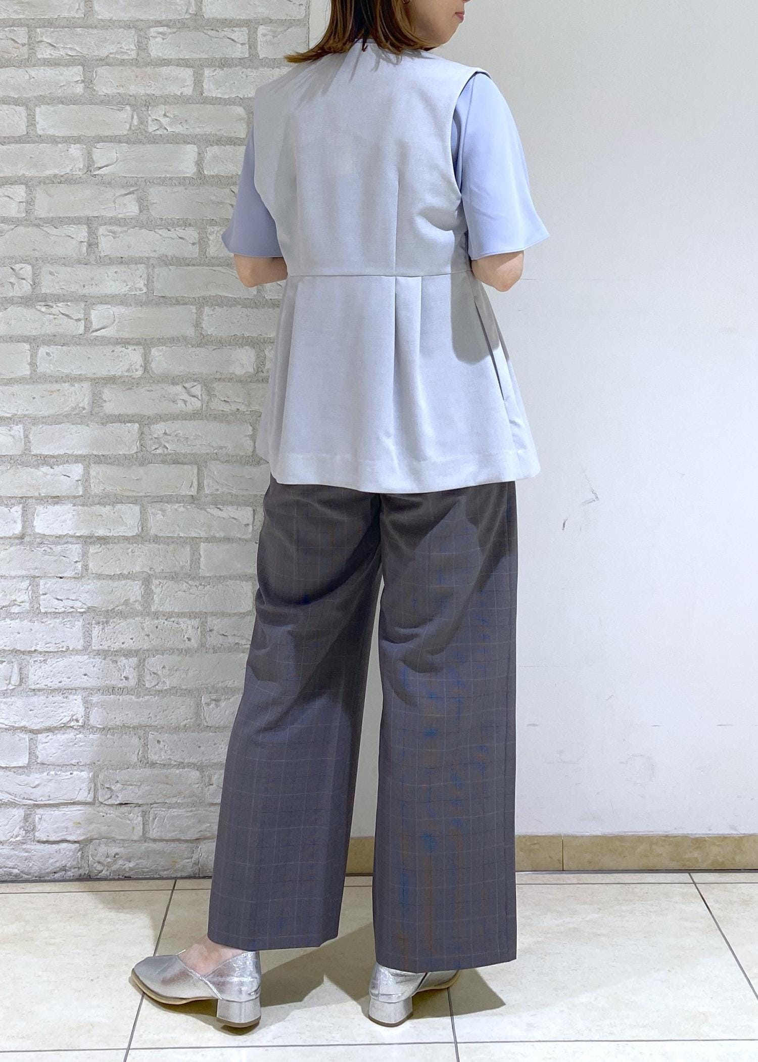 ジレベストを合わせたレイヤードコーデ。
