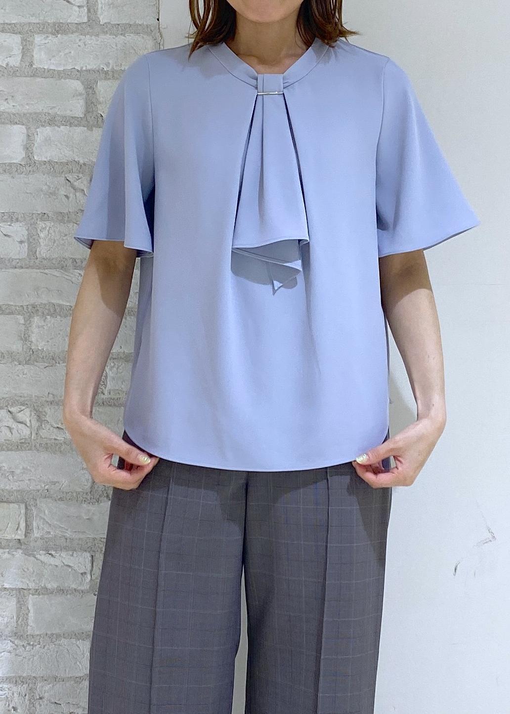 メタルパーツフロントフリルタイブラウス/通勤対応