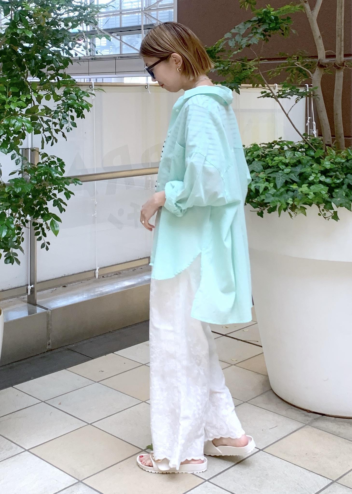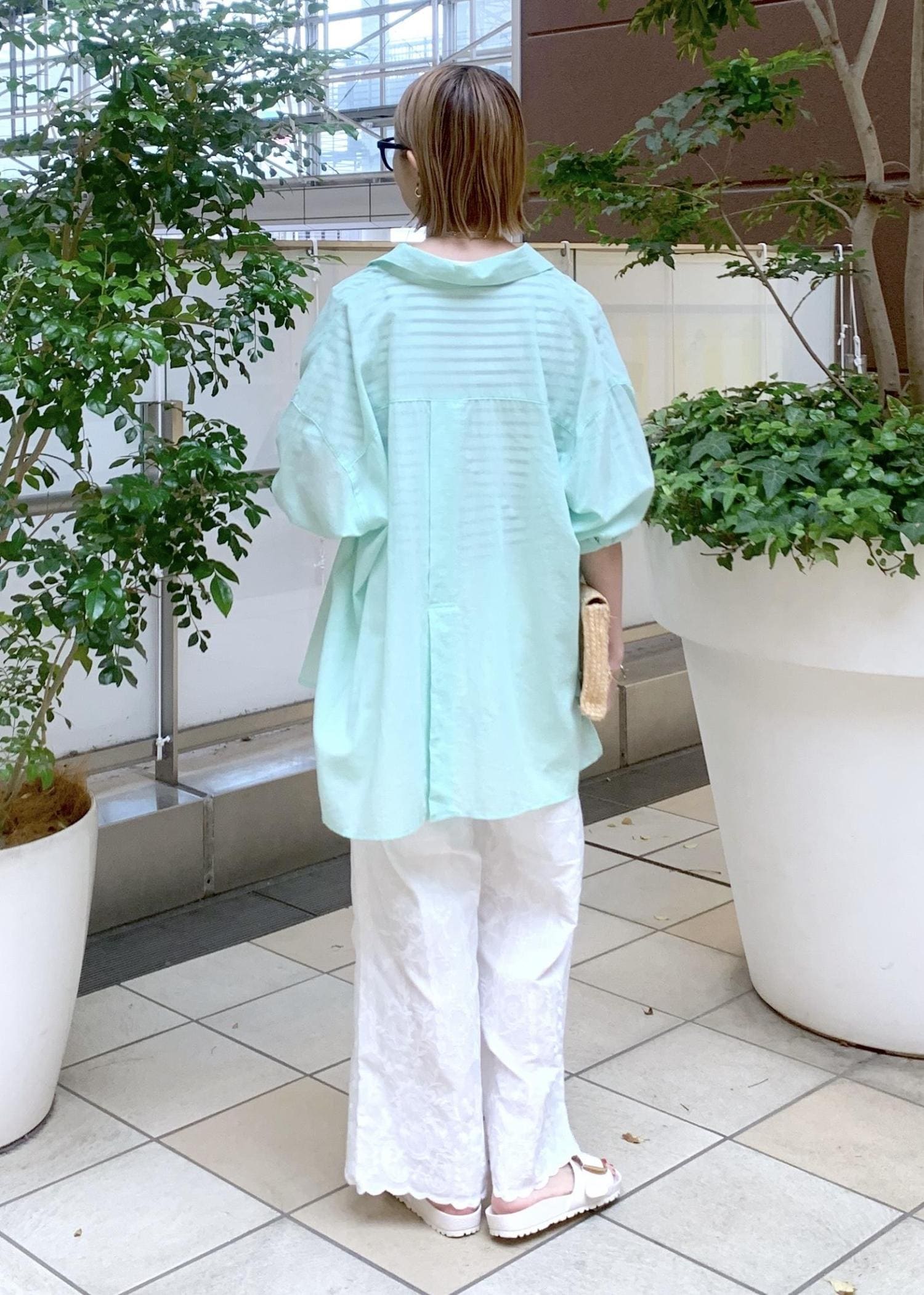 爽やかなカラーが綺麗なグリーンのシャツ。