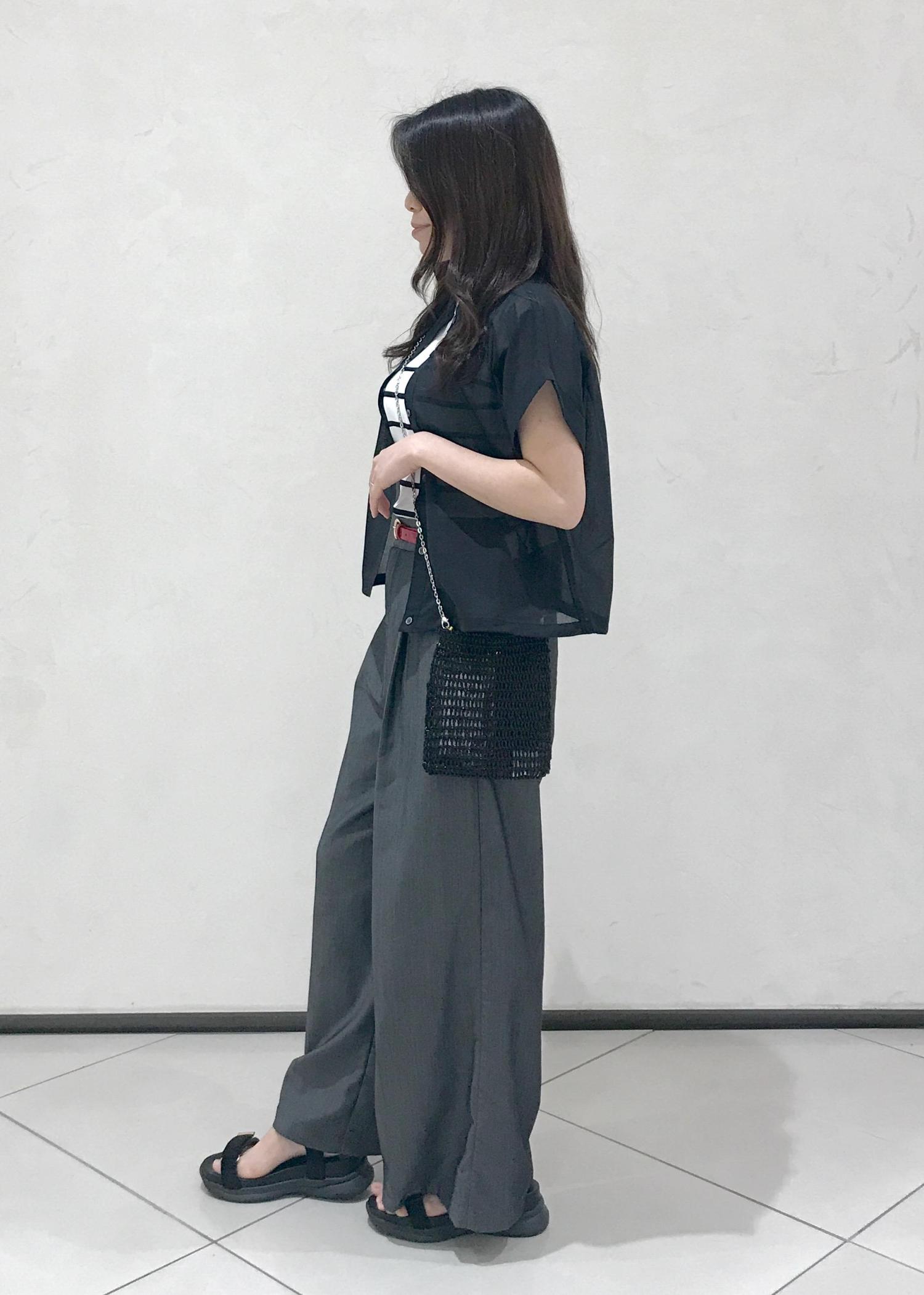 ROPÉ PICNICバルーンヘムシアーシャツブラック /¥4,499レビューシアー素材のカーディガンです。