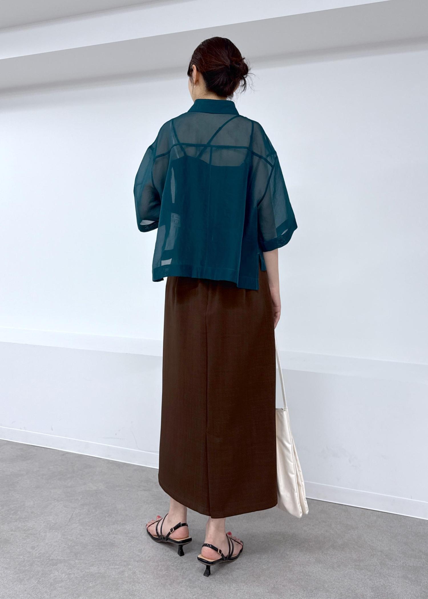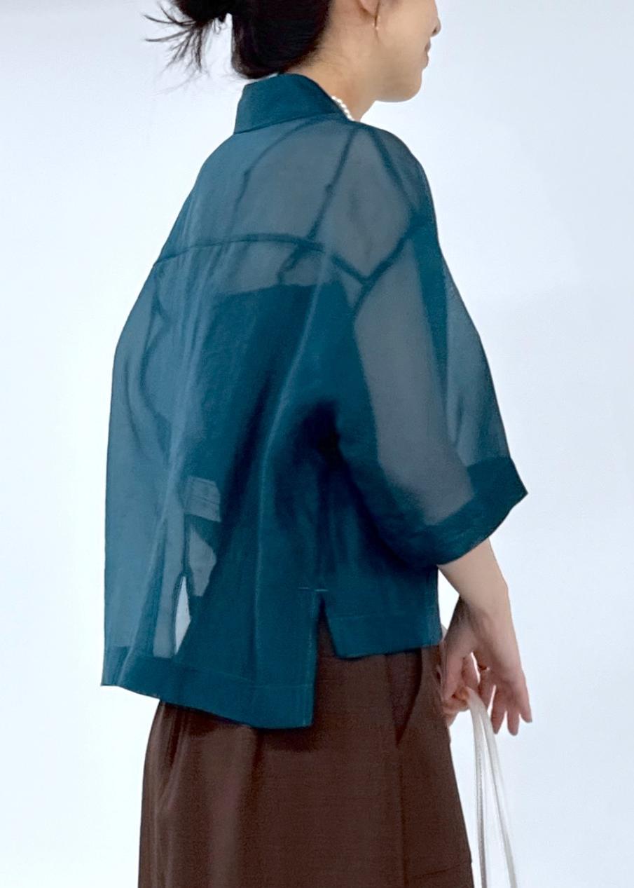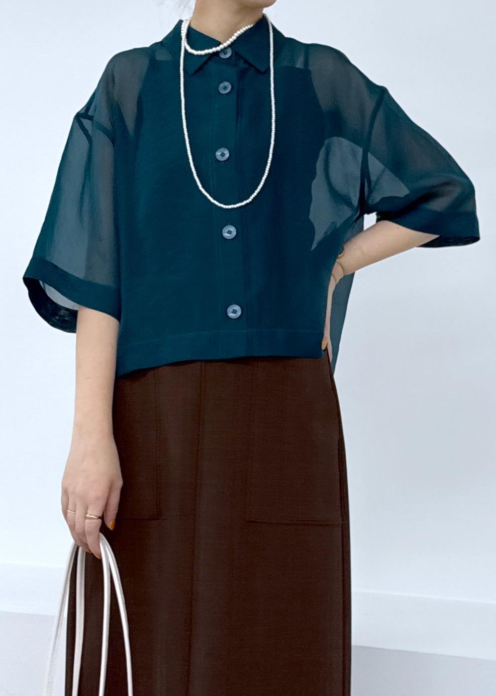 ROPÉ PICNIC【接触冷感】ハーフスリーブシアーシャツダークグリーン / 38¥5,489レビュー体が泳ぐオーバーサイズシルエットが逆に女性らしさを演出してくれます。見た目通り軽い着心地で袖は6分袖くらい。真夏はキャミソールでヘルシーに着るのもお勧めです。