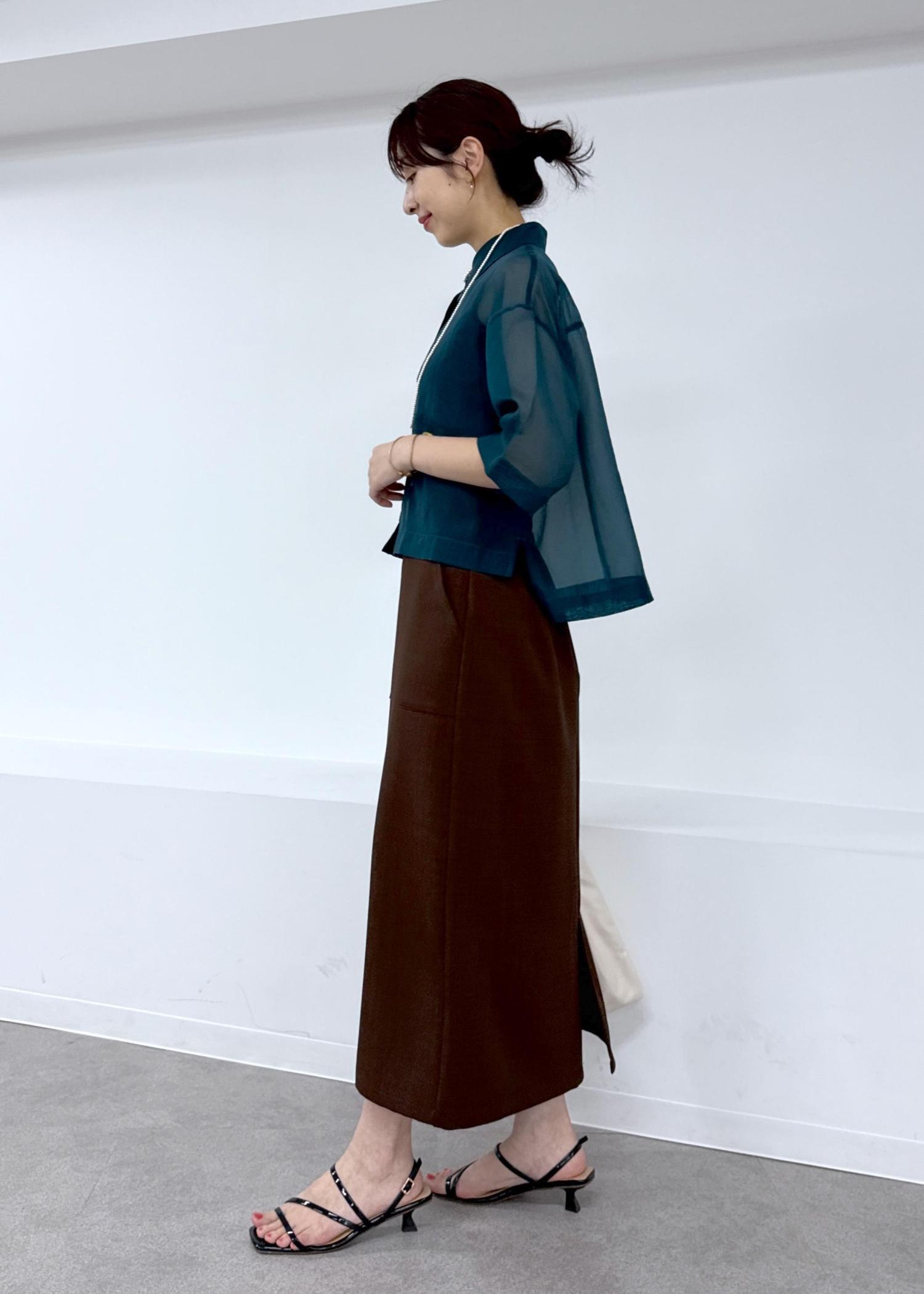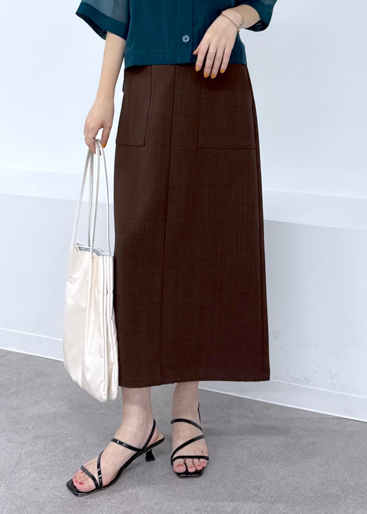ROPÉ PICNICフロントポケットアイラインスカートダークブラウン / 38¥3,842レビュータイトスカートほどピタッとはしないのでボディラインを拾いません。品のあるストレートシルエットなのでお仕事服にもちょうどいいです。162㎝で足首にかかる長さ。38サイズはウエストが緩かったので履くなら36にします。