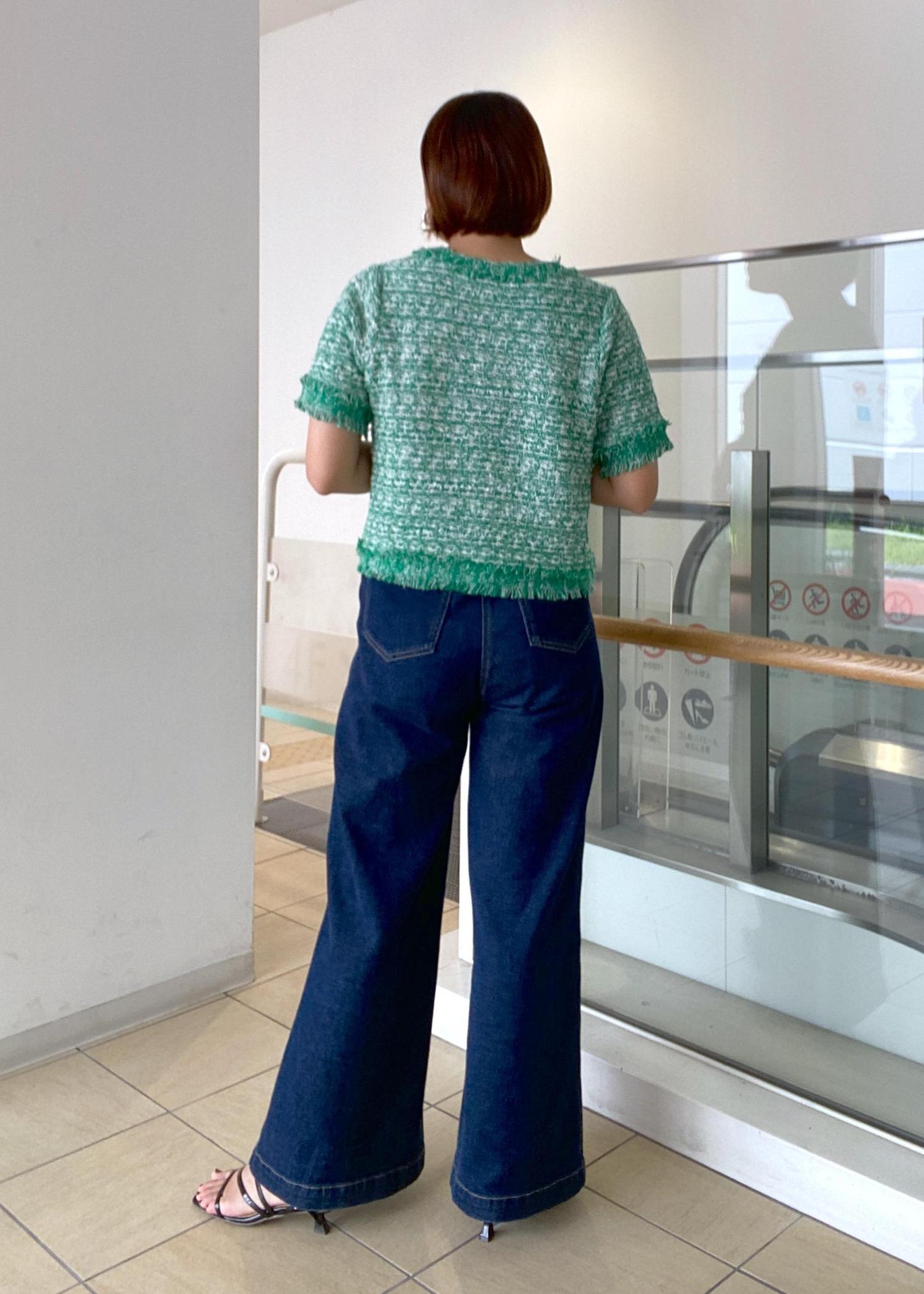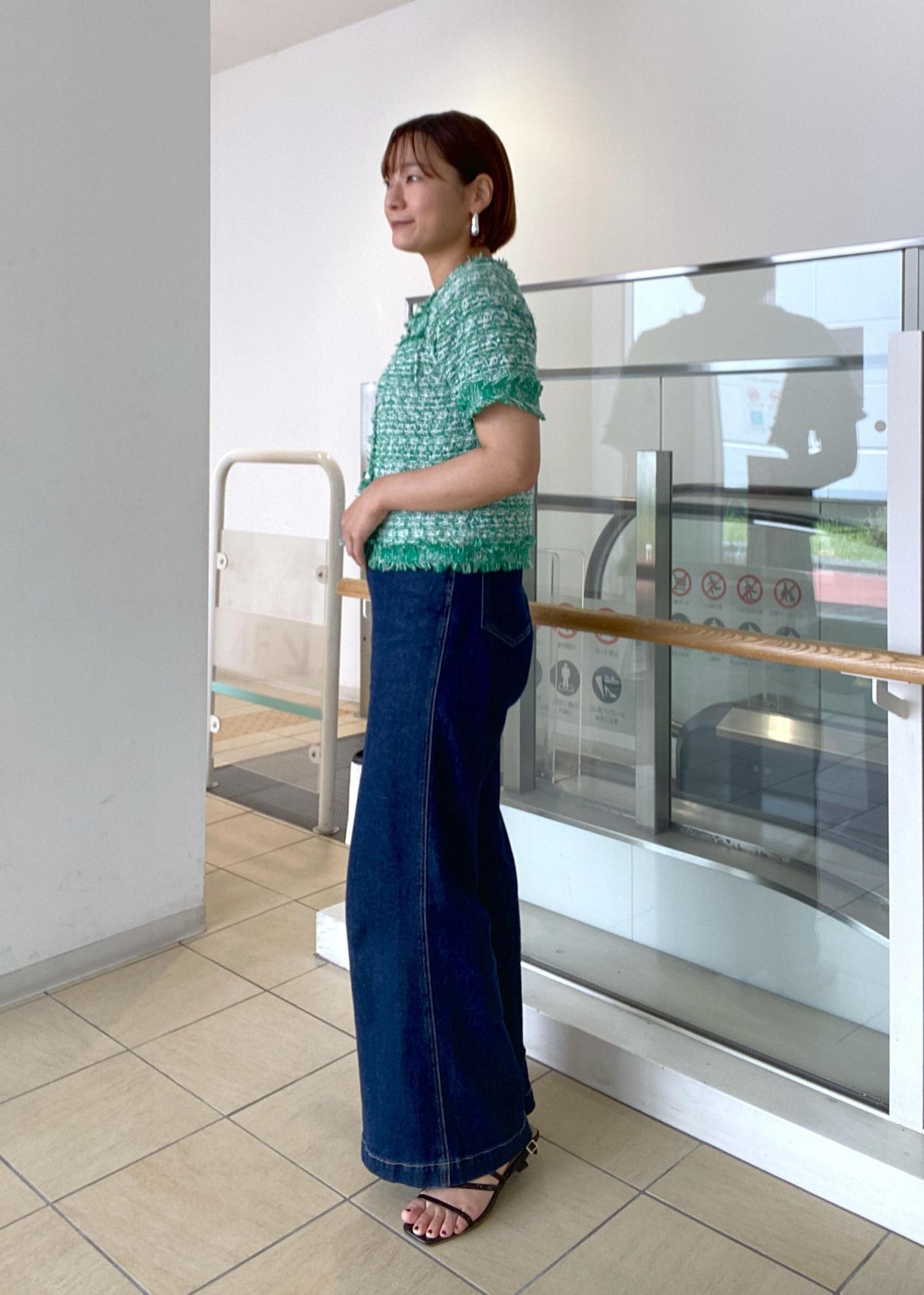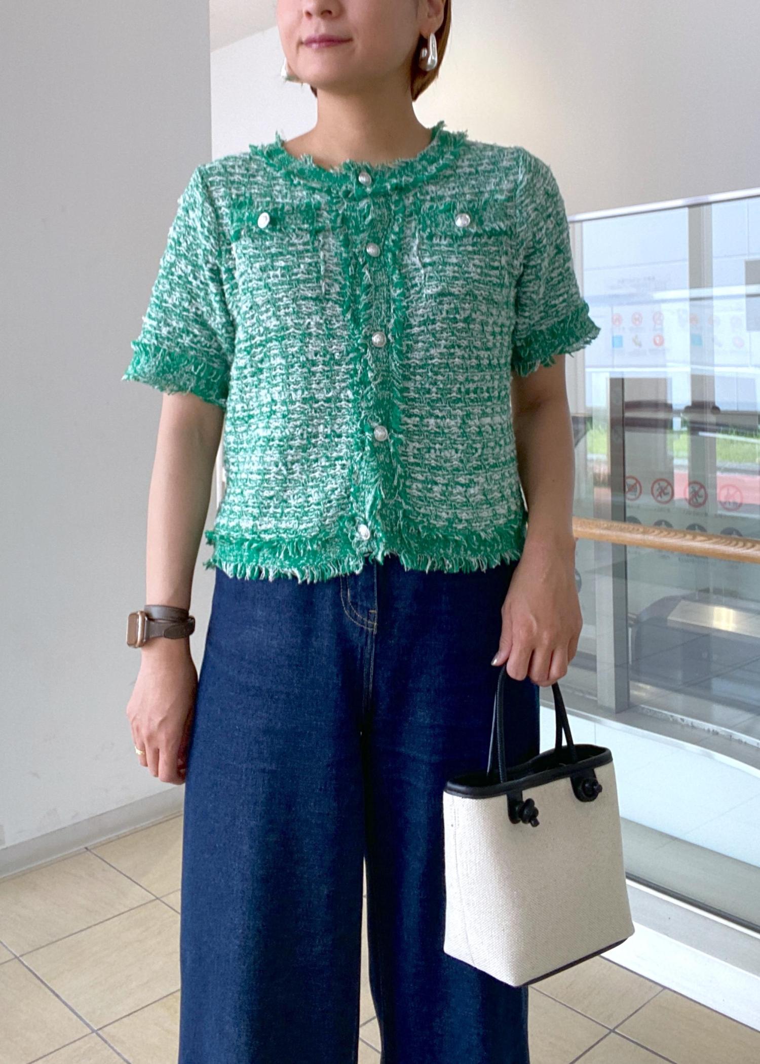 この夏トレンドのサマーツイードのカーディガンを使ったコーディネートです!