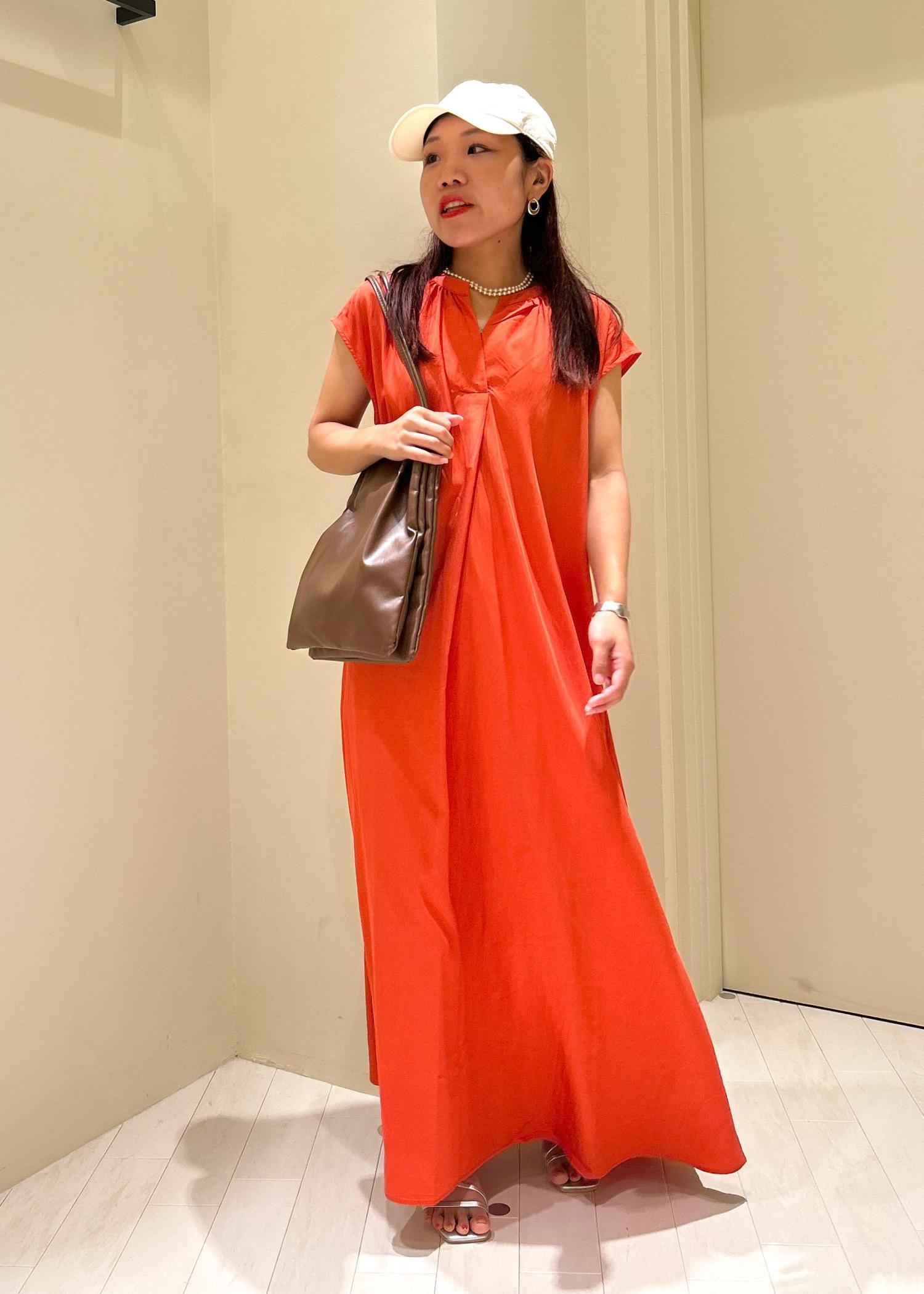 ROPÉ PICNICリラックススキッパーロングワンピースオレンジ / 38¥6,490レビューゆったりとしたAラインシルエットのワンピースで、ボディラインを拾わず締め付け感もないので楽ちんに着れます。