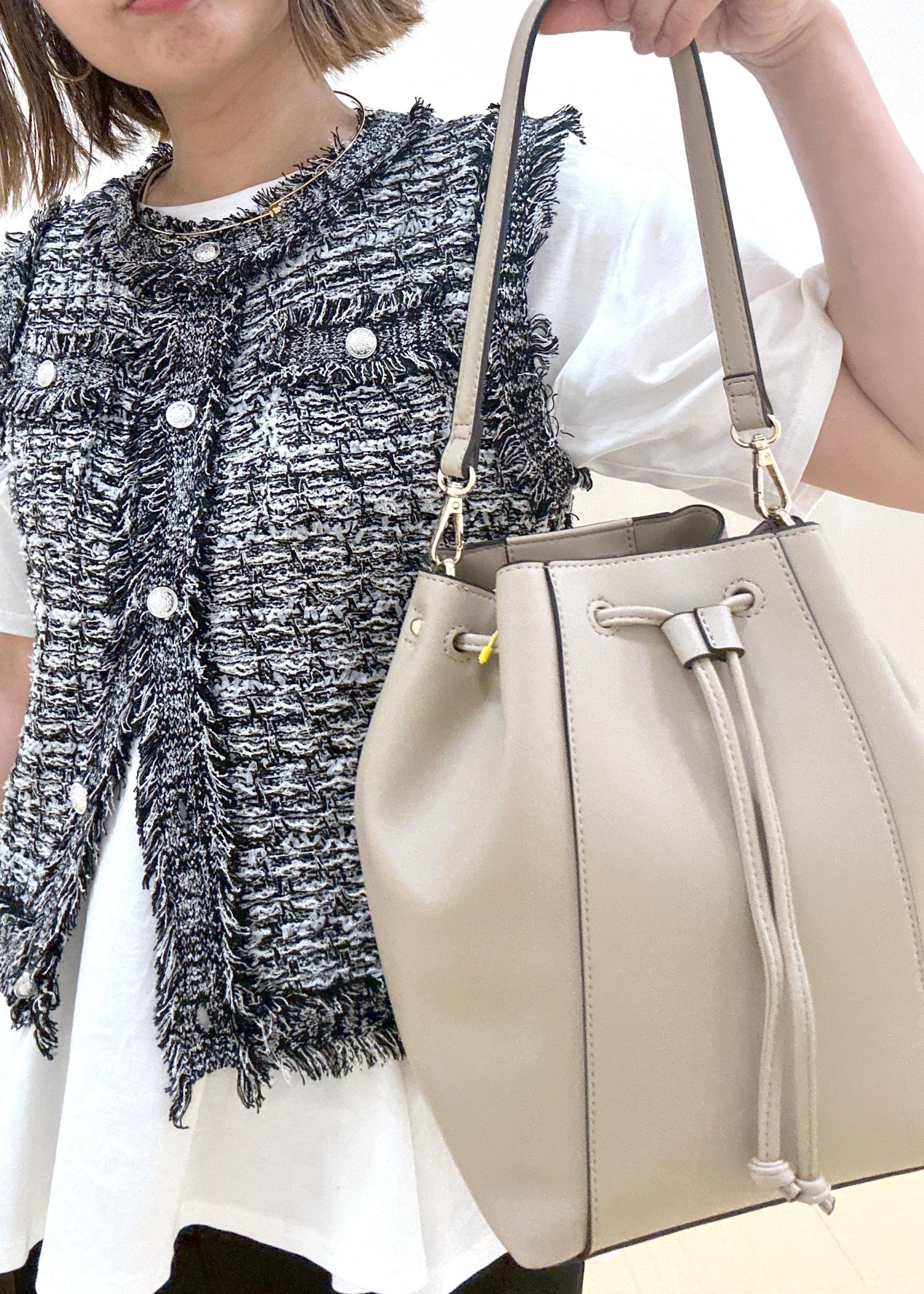 ROPÉ PICNIC PASSAGE2WAYドロストショルダーバッグベージュ系 / F¥3,842レビュー長さの違う持ち手の紐が2種類あり、短い方でも肩から掛けられます。長い方は調節可能なショルダー紐。