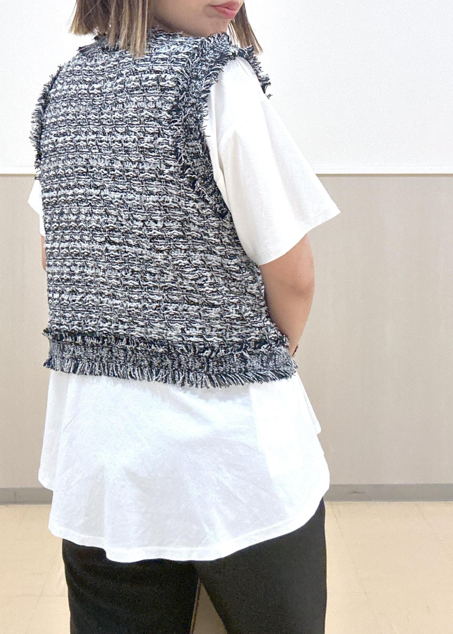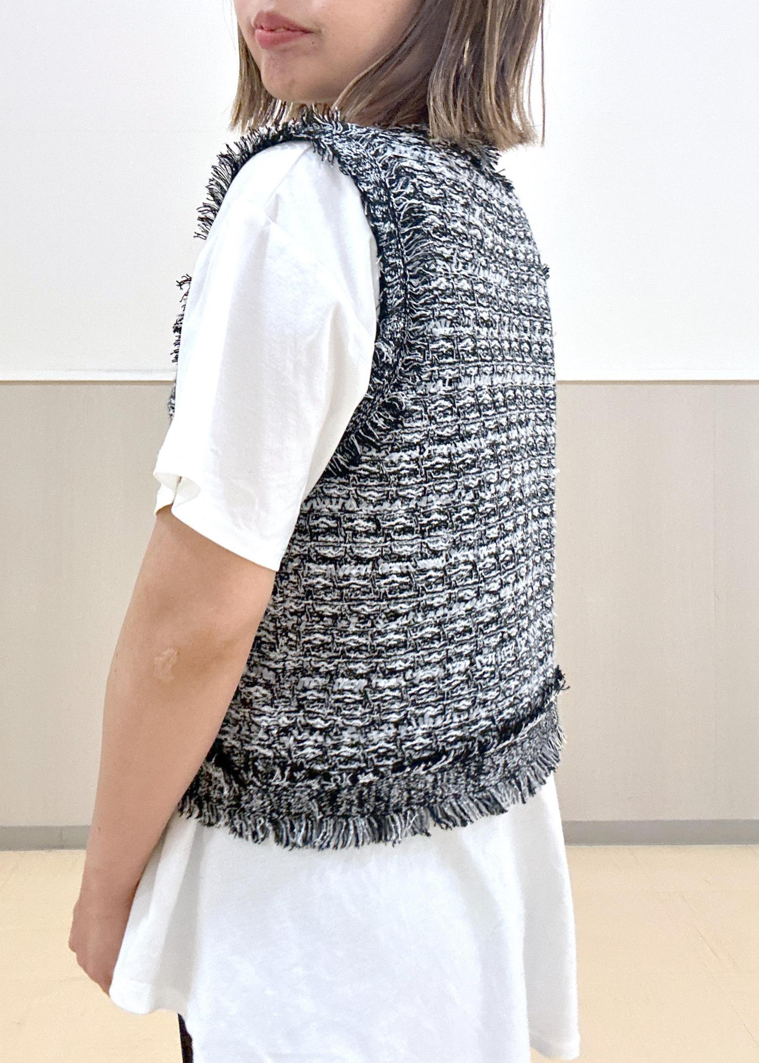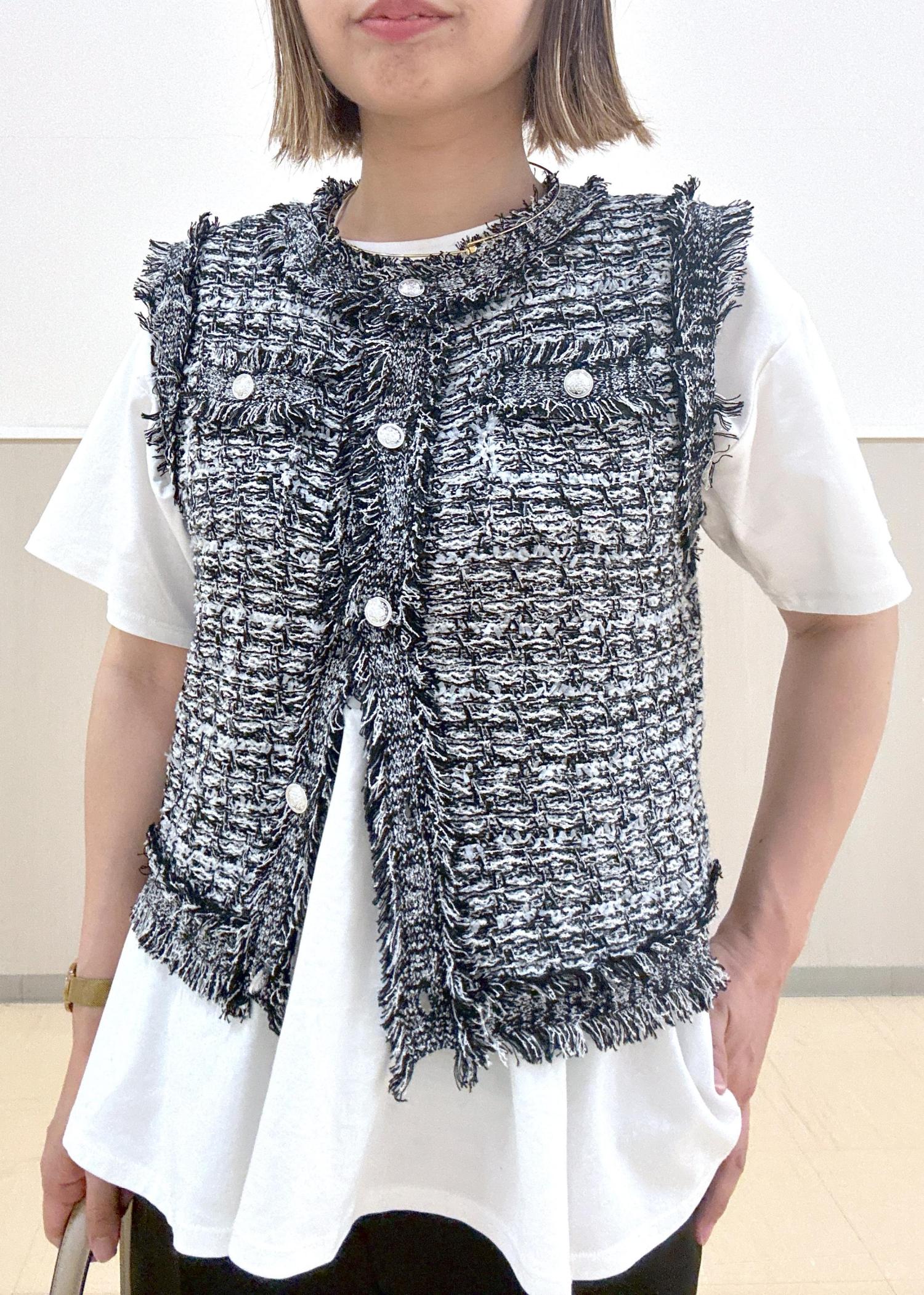 ブラック系カラーのジレはホワイトも混じっているので重く見えなくてこれからの夏もオススメ!