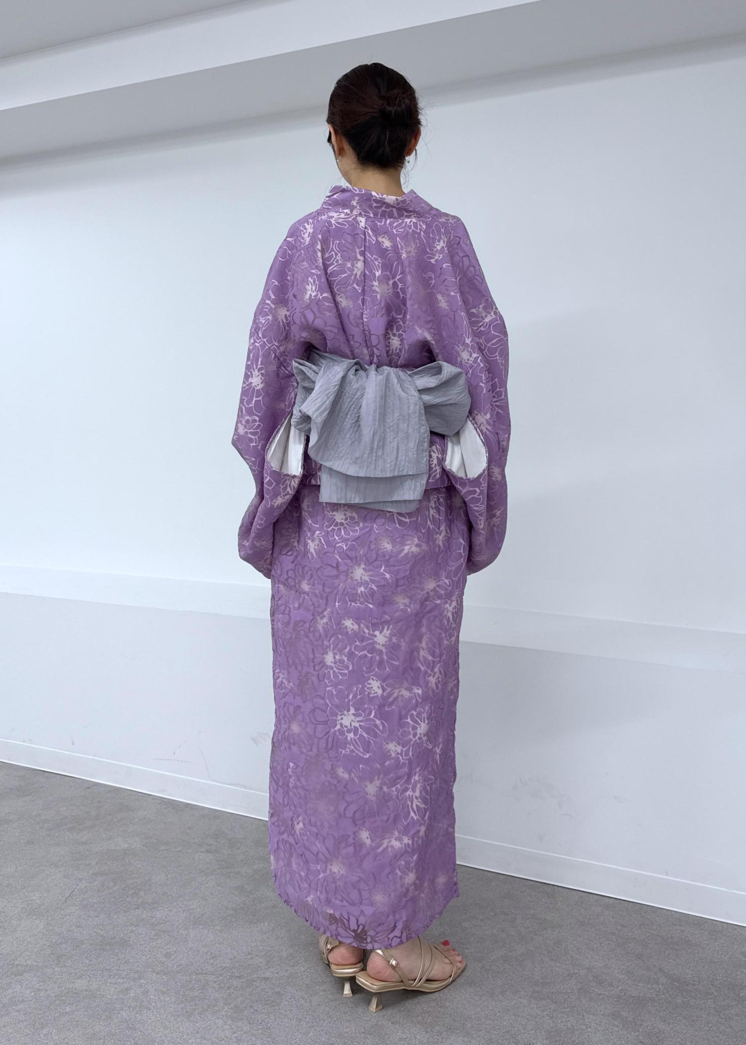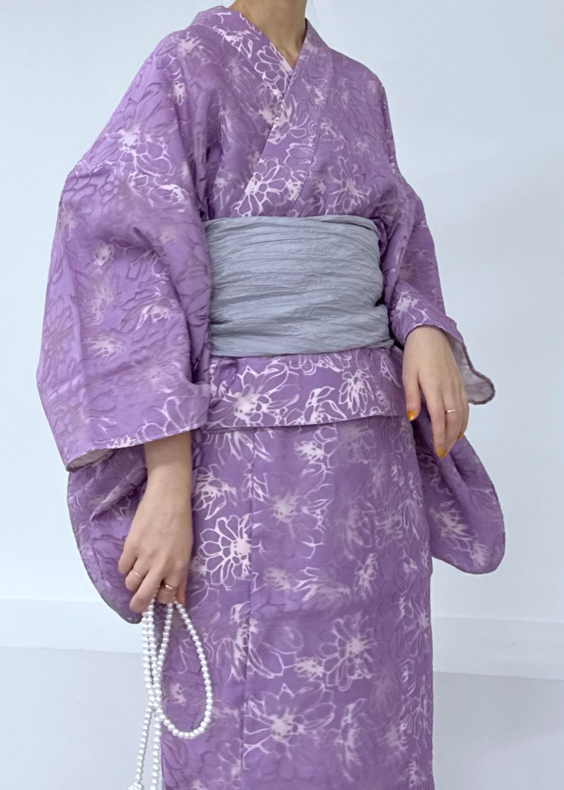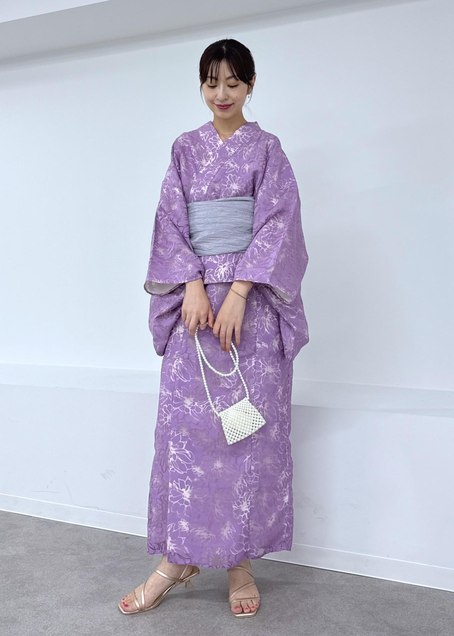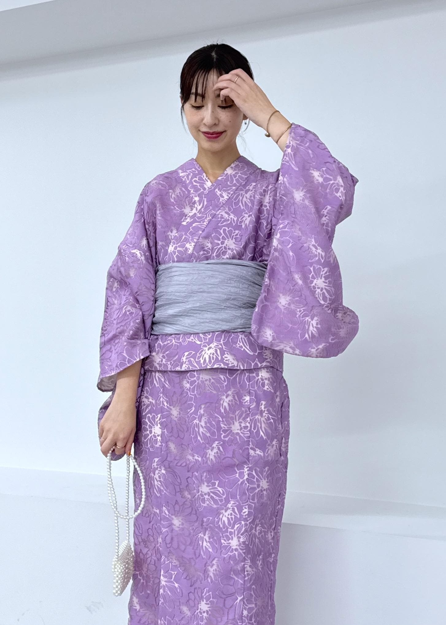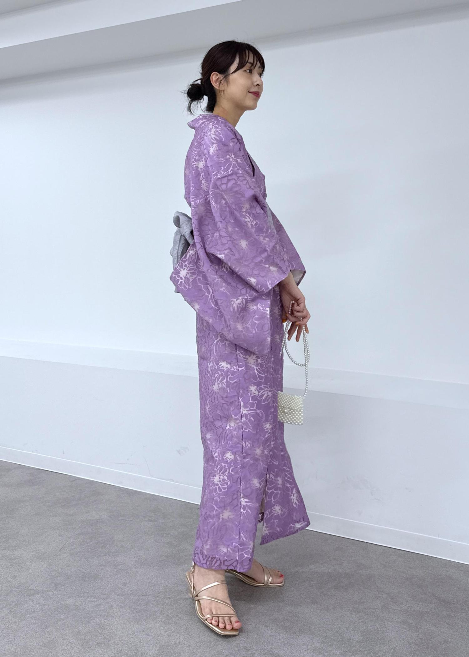 ROPÉ PICNIC【emur/エミュール】1人で着られる浴衣キャミワンピースセットラベンダー / 38¥16,500レビュー紫陽花のような発色のいいラベンダーカラー。柄は少し凹凸があるので立体感と華やぎをプラスしてくれます。裏地が付いているのでインナーが響かず安心◎帯はくしゃっと柔らかい生地で1人で結びやすいです。ワンサイズですが着丈は肩紐のアジャスターで調整可能。