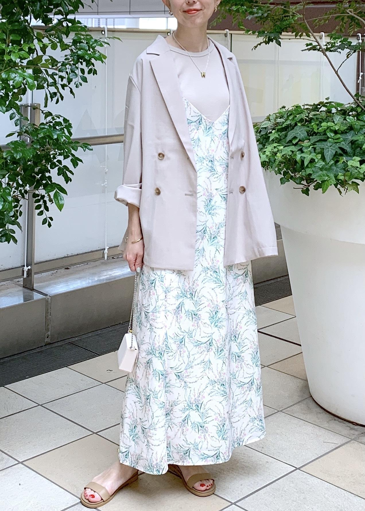 夏らしい清涼感のあるガーデンプリントのキャミワンピース。