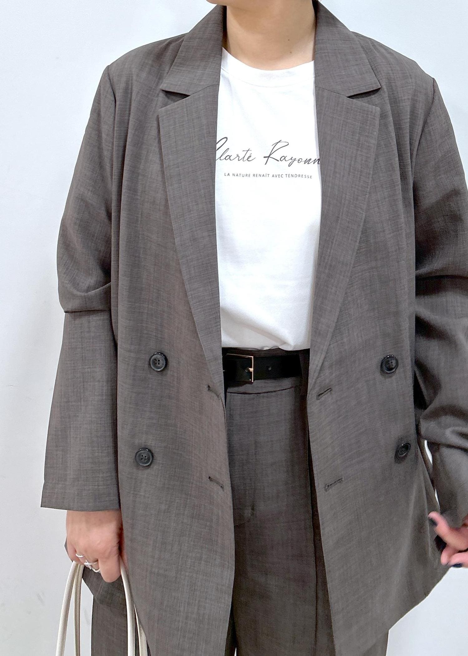 オーバーサイズのジャケットとパンツのセットアップ◎