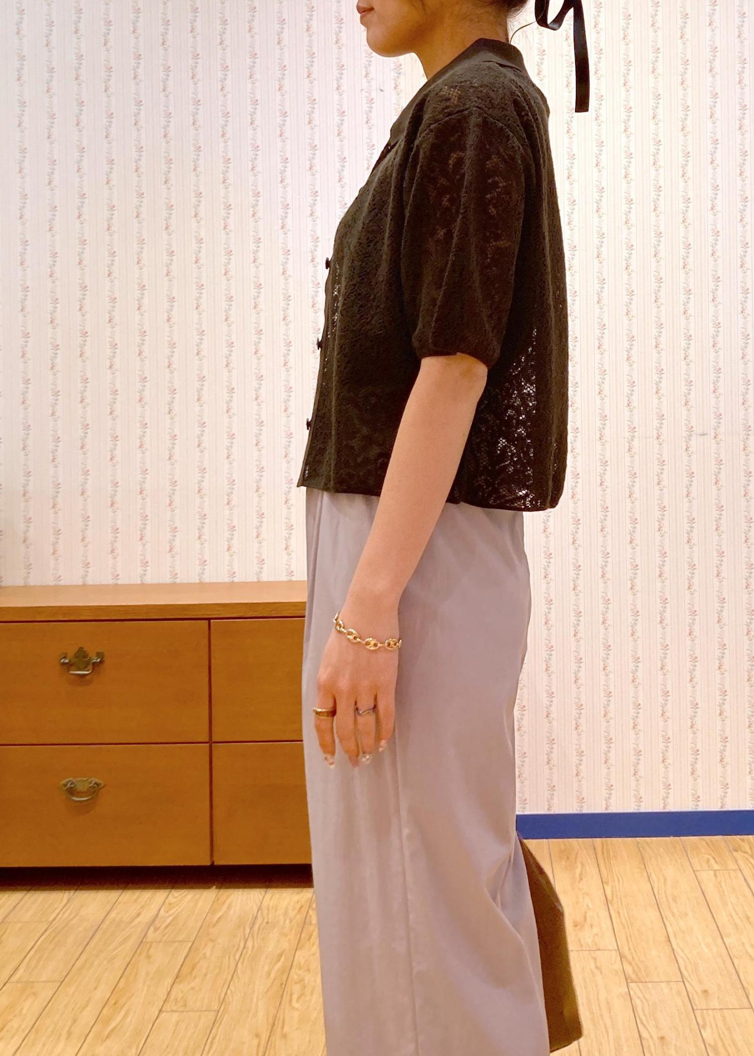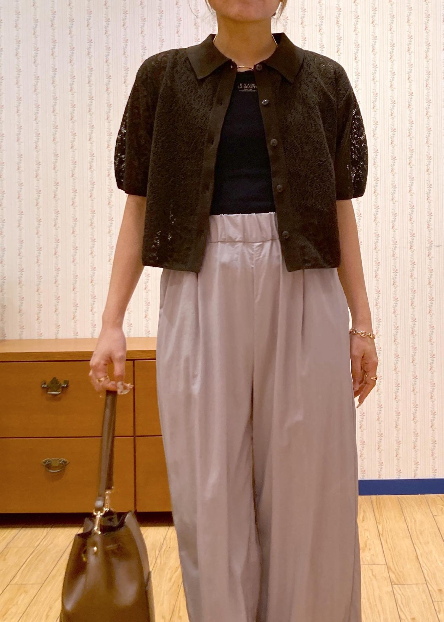 襟付きのレースカーディガンできちんと感をプラスしたので、学校行事やオフィスカジュアルにもおすすめです!