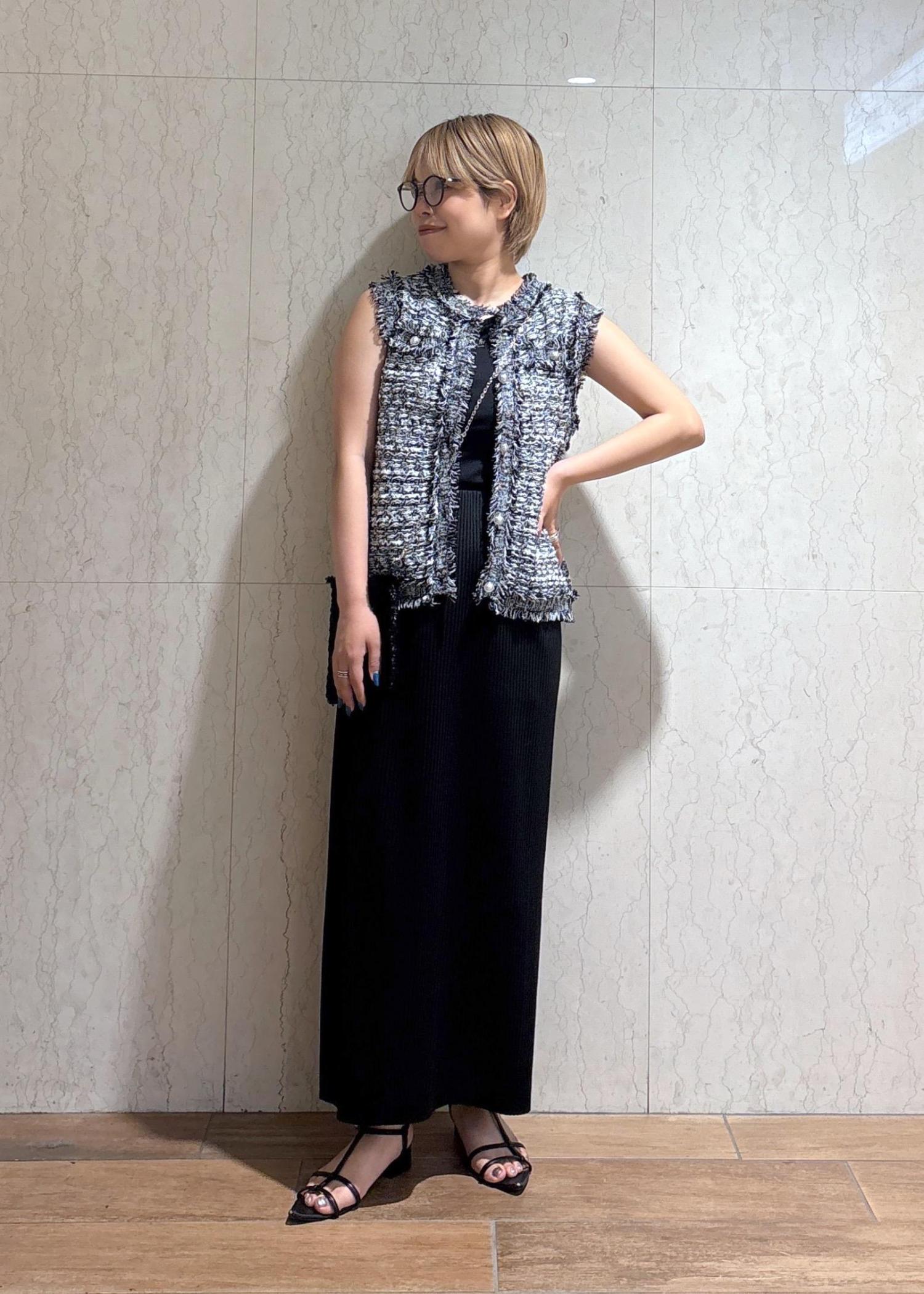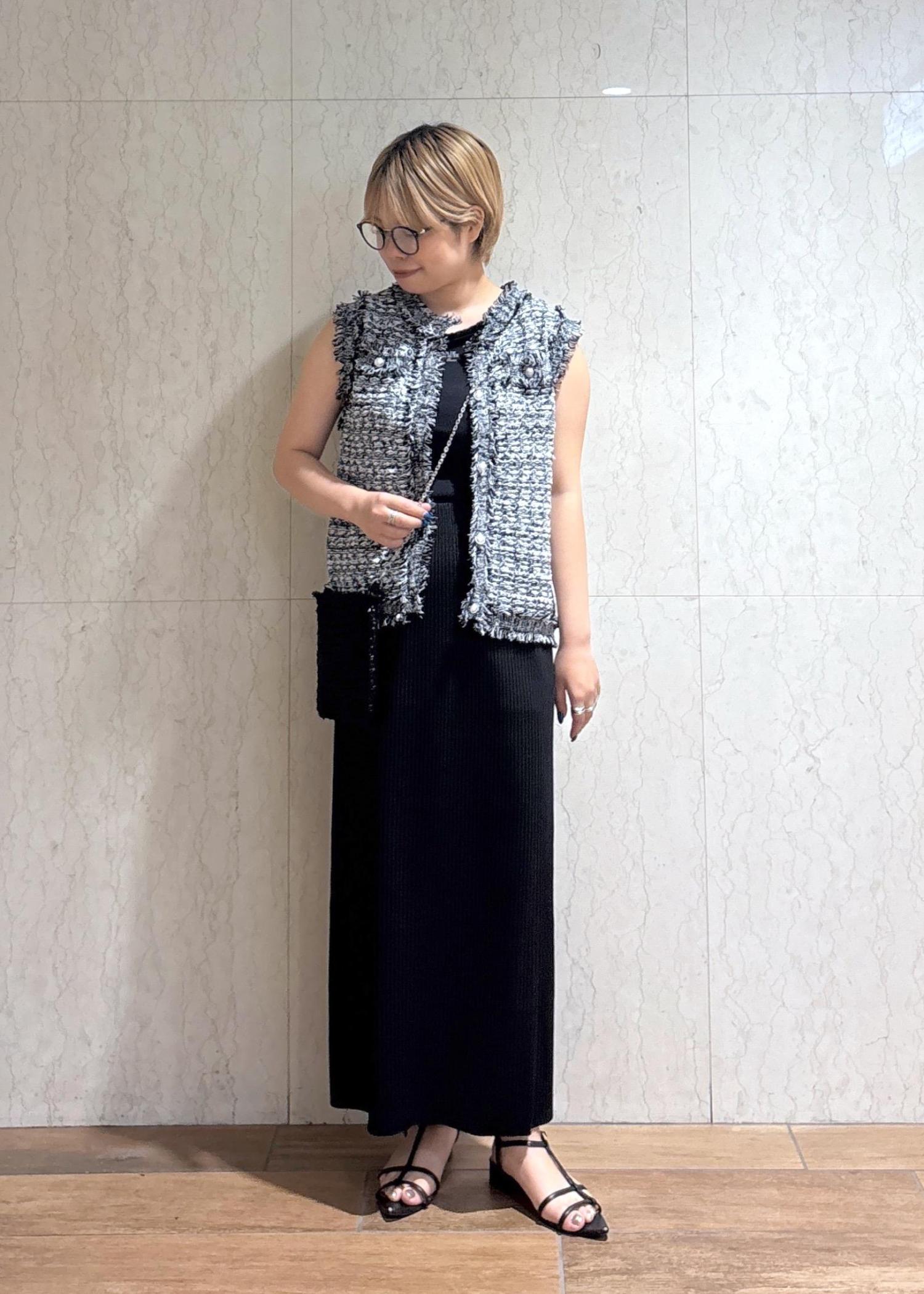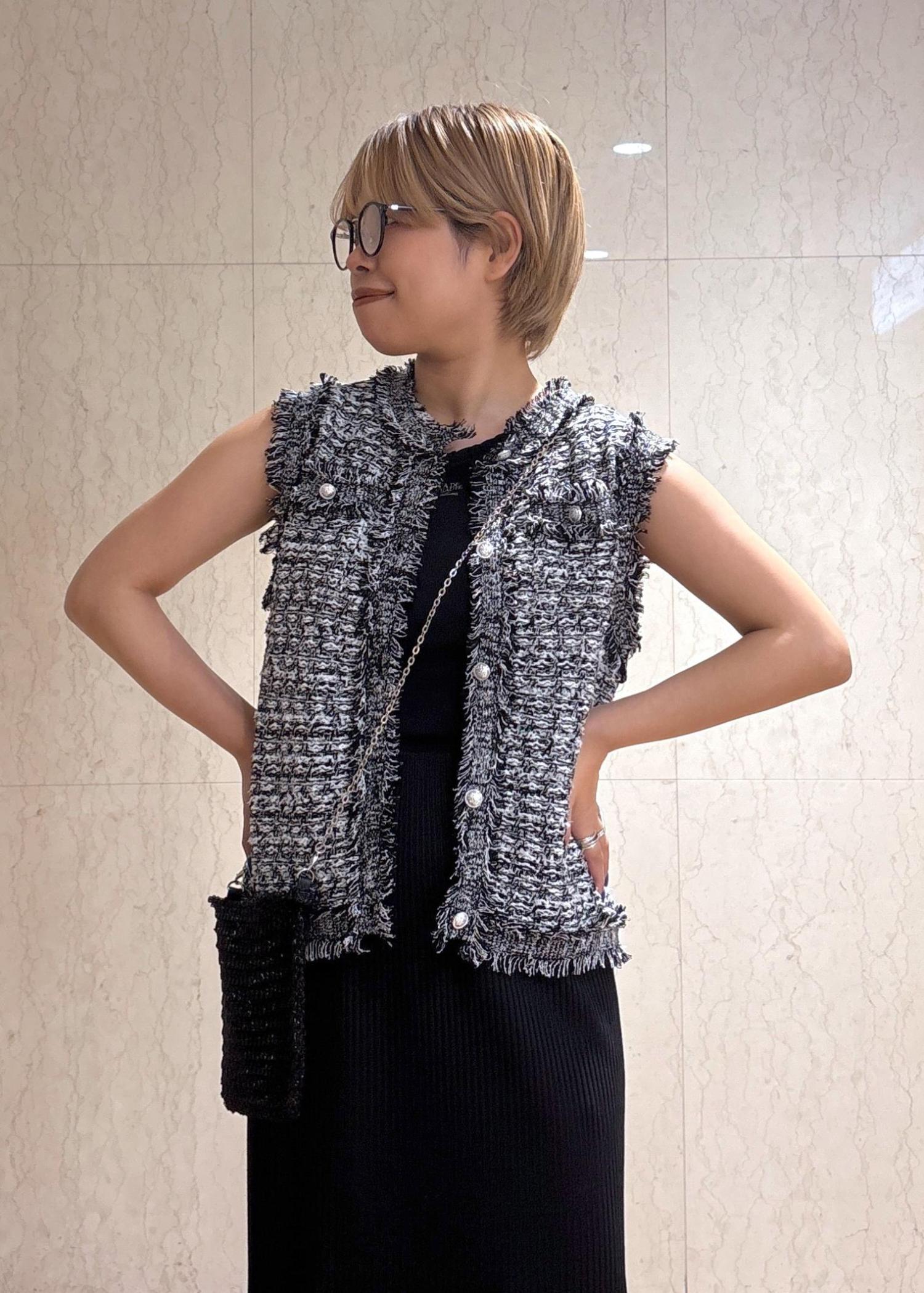 ROPÉ PICNIC【WEB限定カラー】【サマー・ツイード】着丈が選べるジレベスト/スリーブレスカーディガンブラック系 / 38T¥4,994レビュー着丈が選べるサマーツイードのジレなので、お好みの長さで選んでいただけますよ。