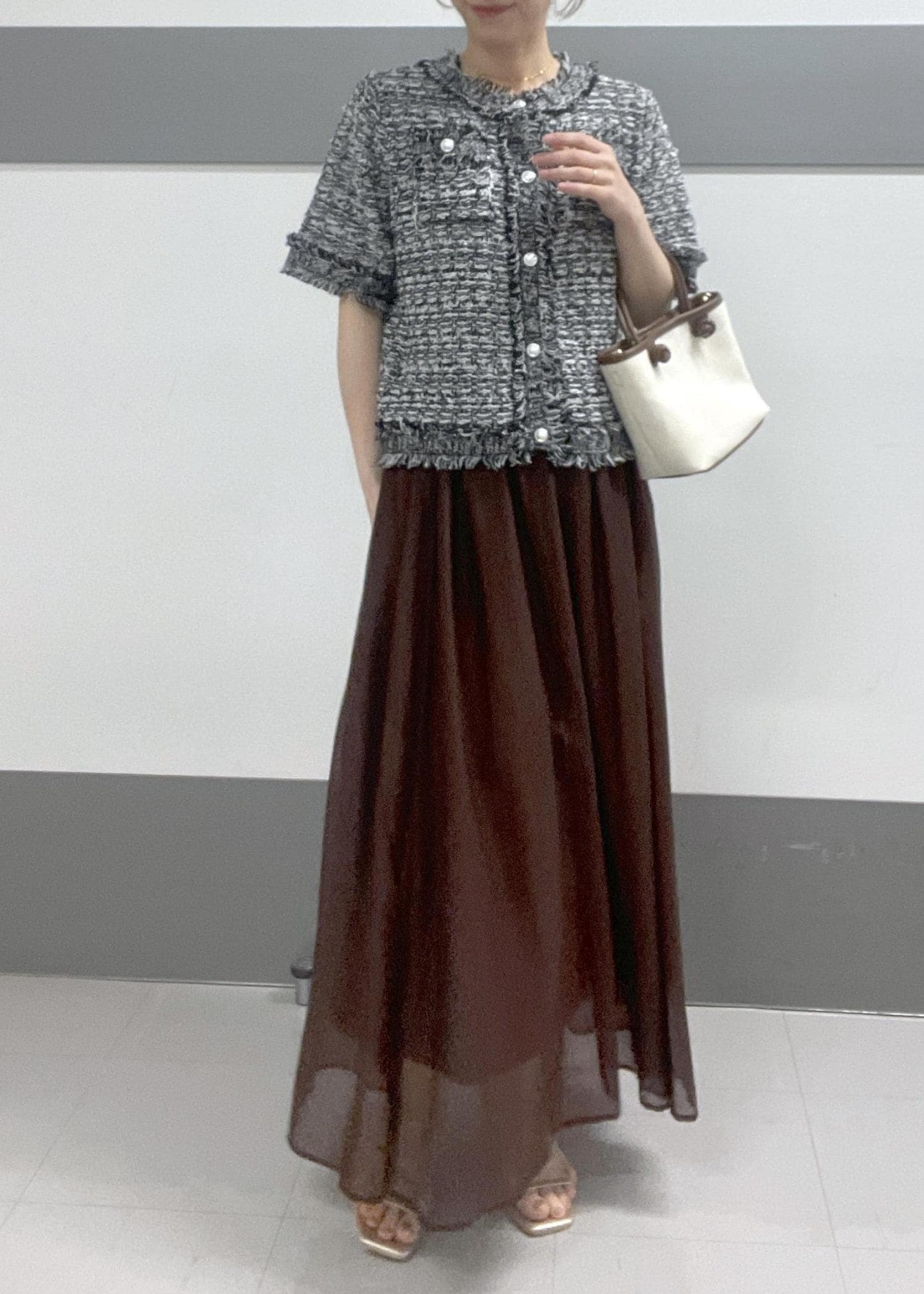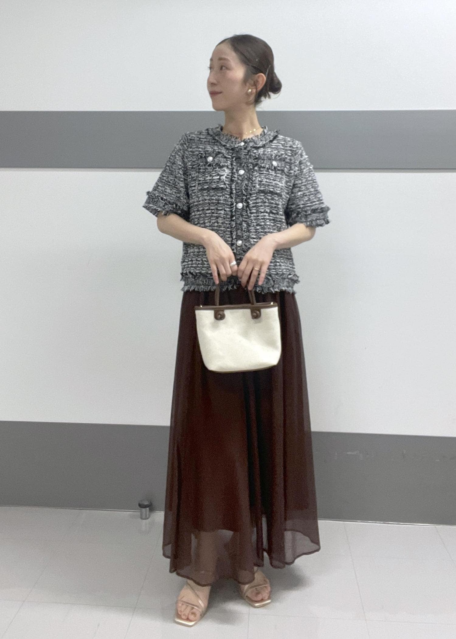 ブラウンのスカートと合わせて、大人っぽく☺︎
