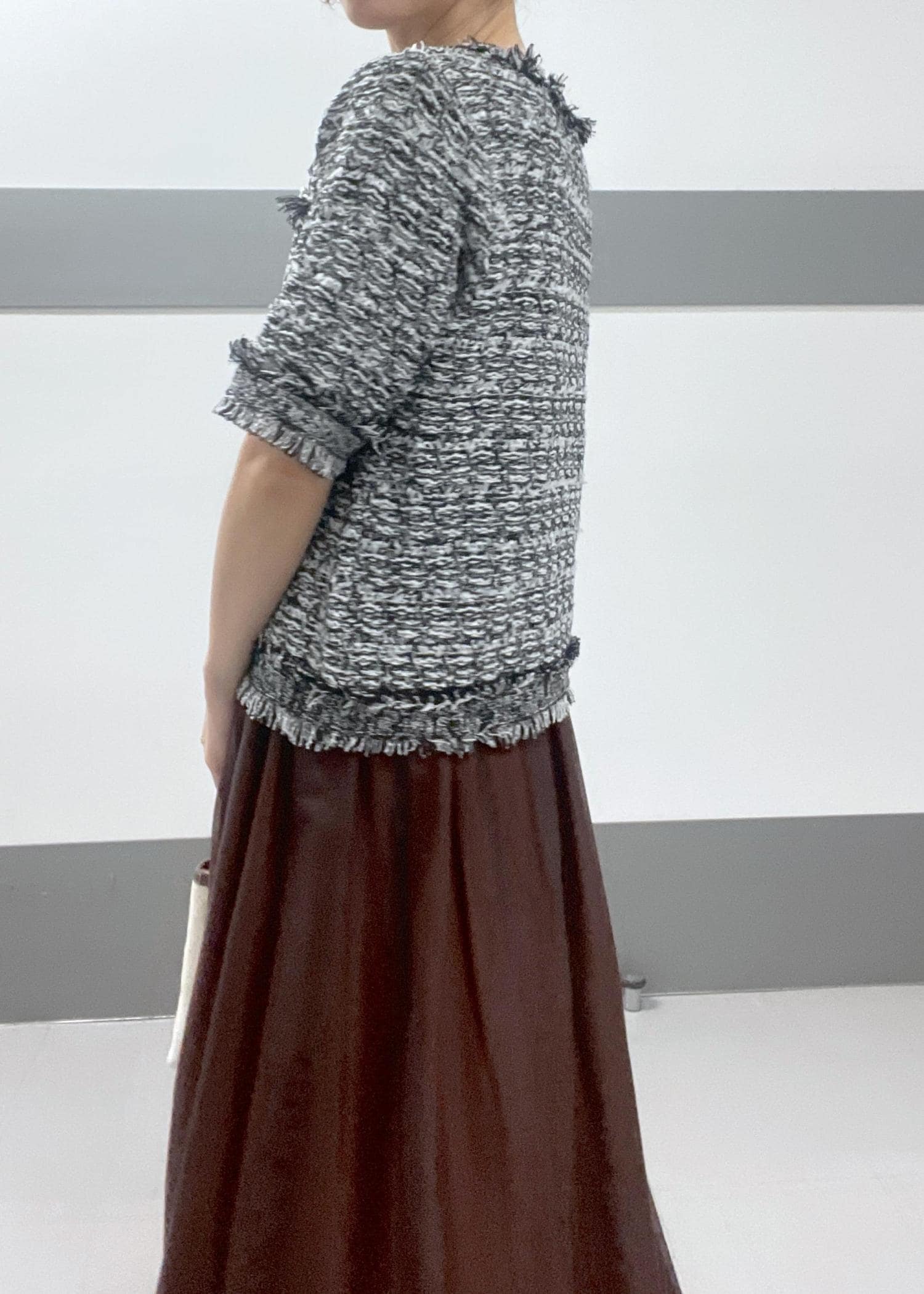 ROPÉ PICNIC【サマー・ツイード】ハーフスリーブカーディガンブラック系 / 38¥5,489レビューサマーツィードのカーディガンなので、着心地は軽く涼しく着ていただけます。着丈は腰ぐらいで、オンオフどちらでも着回せるデザインです。