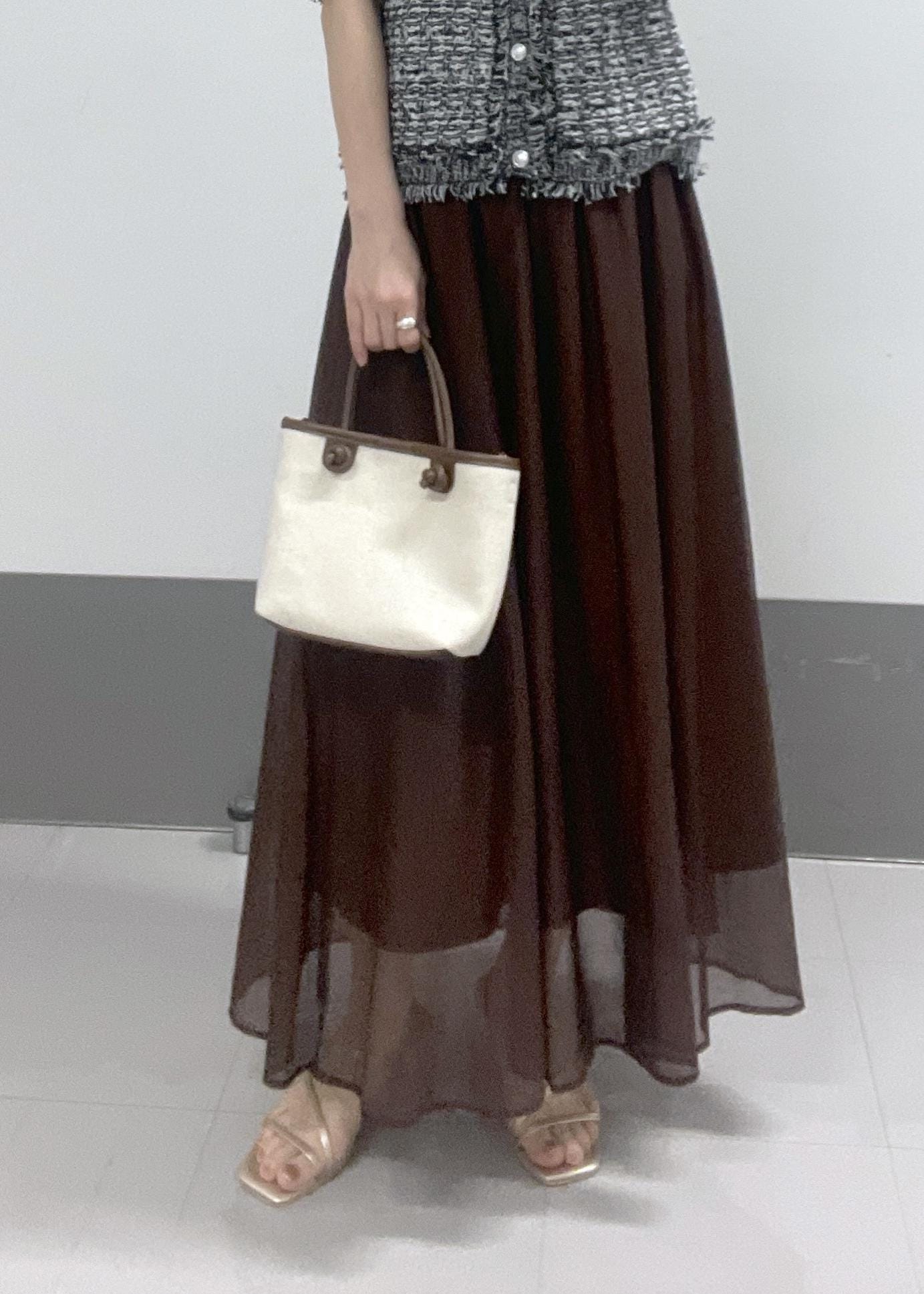 ROPÉ PICNICエアリーシアーギャザーロングスカートダークブラウン / 38¥6,490レビューシアー感のある軽やかな素材で、涼しく着ていただけます。ウエストはゴムなので楽な着心地です。