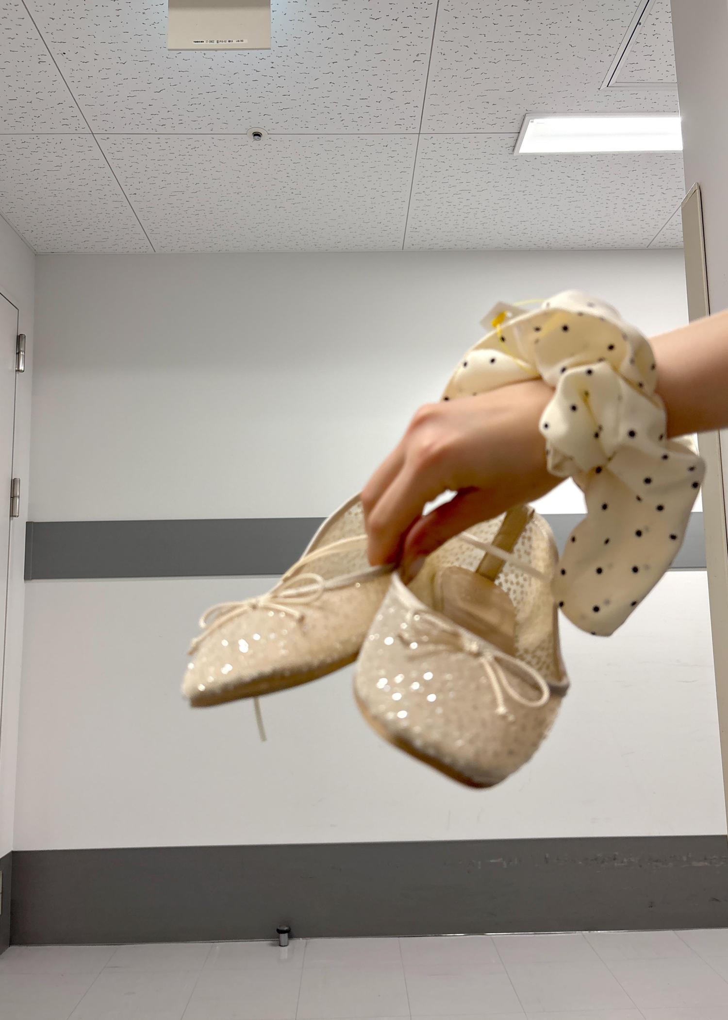 こちらのパンプスは、軽くて柔らかいバレエシューズになっています!ラメが散りばめられていて足元が一気に可愛くなります!ラフに履きたい時に◎