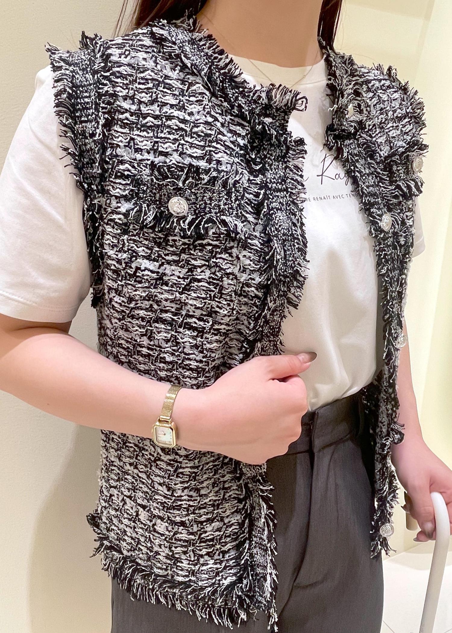 1枚で様みえするデザインで、トップスとしてもジレとしても活躍する1枚です。 -