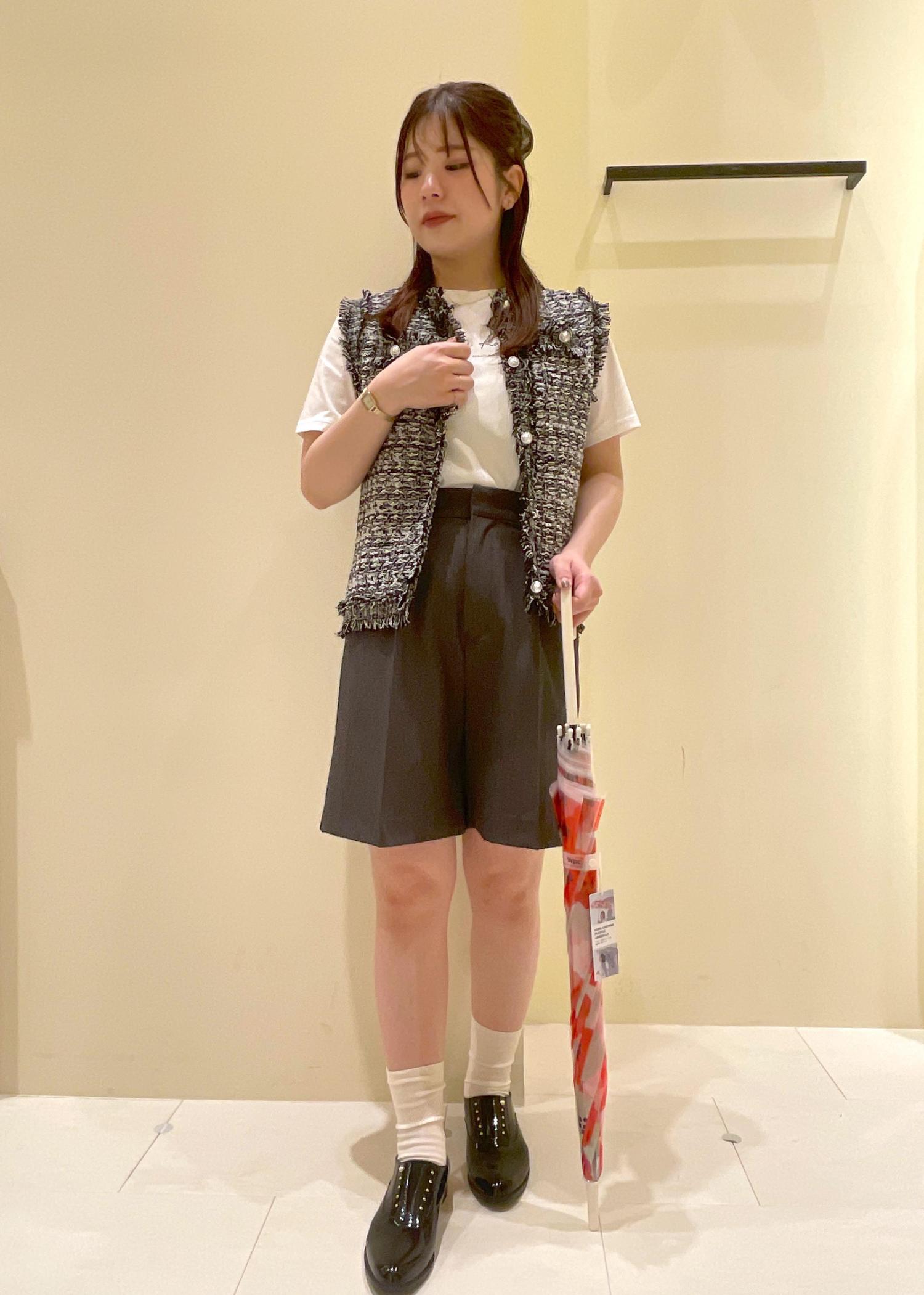 雨の日でもテンションが上がるようにトレンドのジレとハーフパンツで抜け感をプラスしました!♡´-