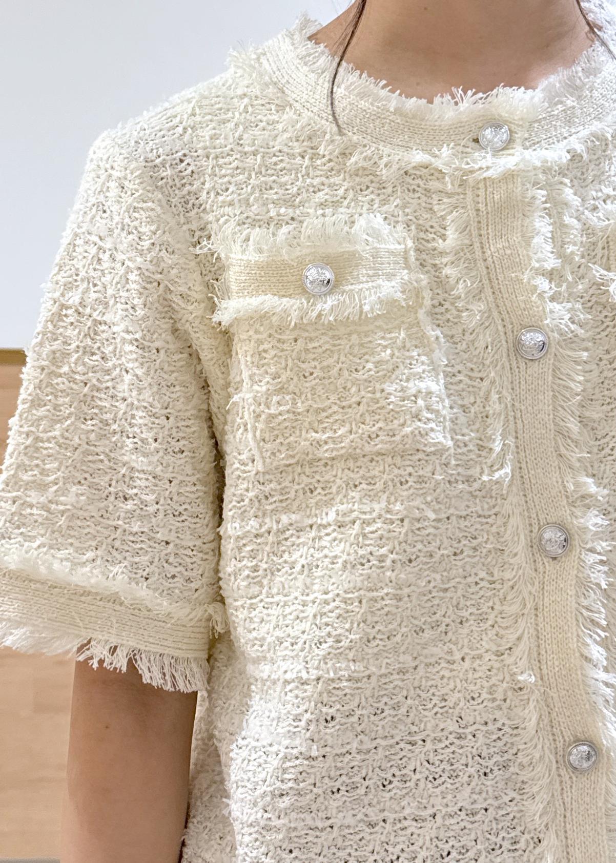人気のサマーツイードシリーズのハーフスリーブデザインは、トップスとしても、羽織りとしても着映えしてとても可愛いです♪