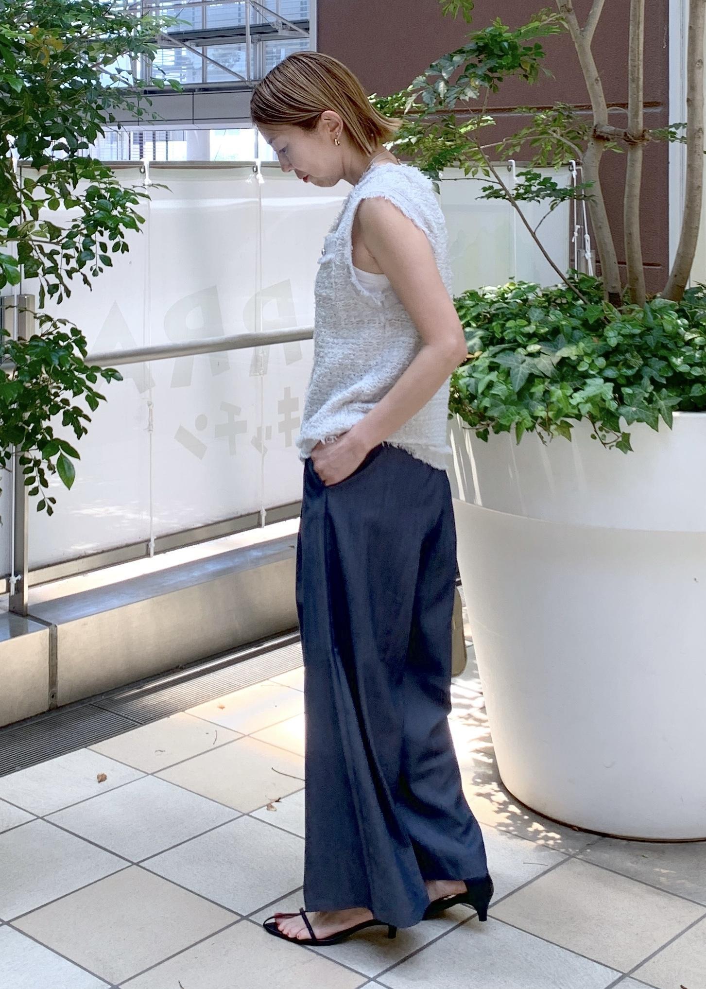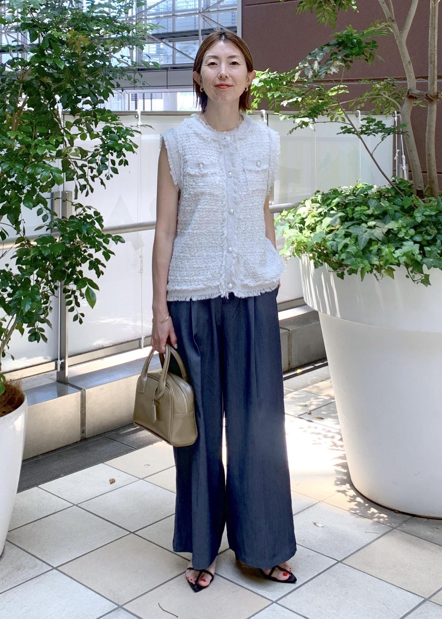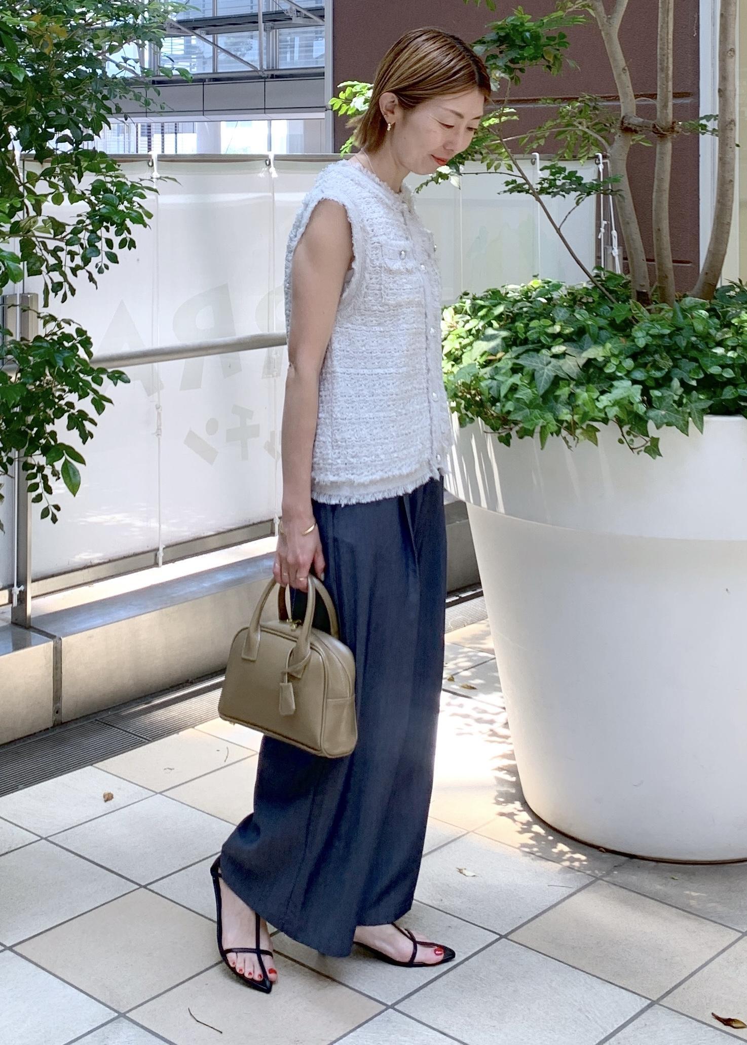 ワイドパンツ、フレアスカートを合わせてオフィススタイリングにも◎ -