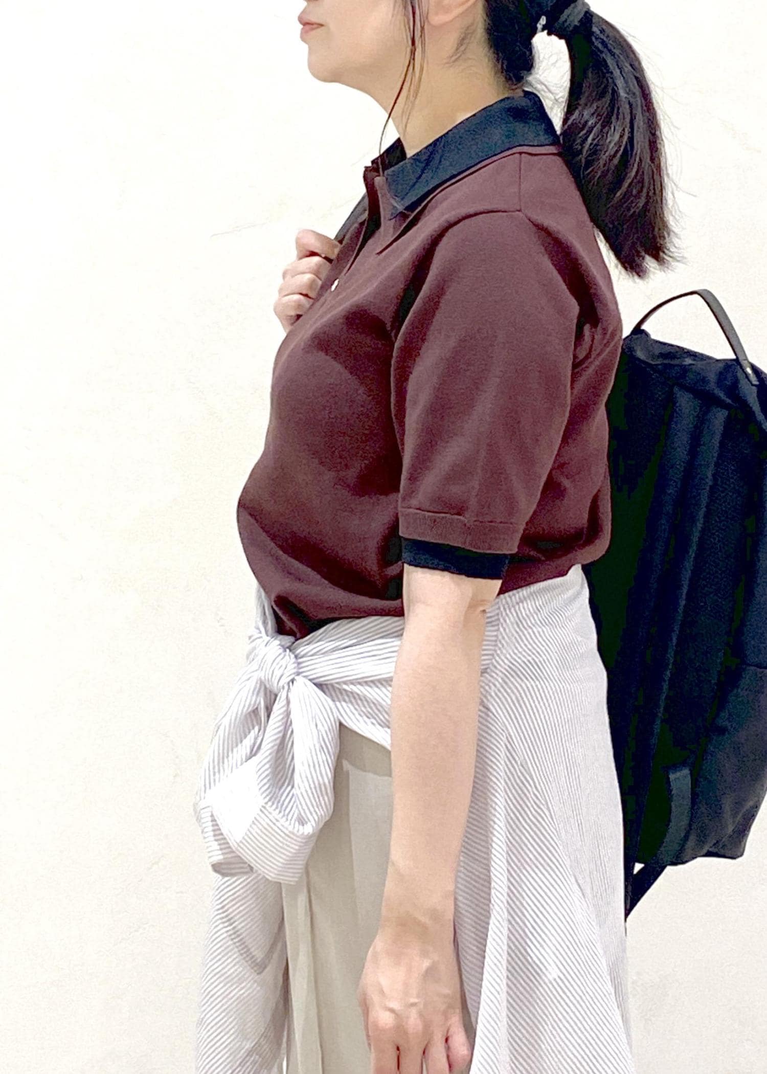 ROPÉ PICNIC【新色追加】バイカラーレイヤード風ニットポロシャツブラウン系 / 38¥4,499レビュー肩の落ち感は私のスタイリングの中では少なめですが、リブもキツくなくそこまで体のラインを広いにくく楽な着心地です。Vネックなど首まわりがあきすぎるのが気になる方にも安心です。生地にはレーヨンが入っており、ごわごわやチクチク感は感じにくいです。