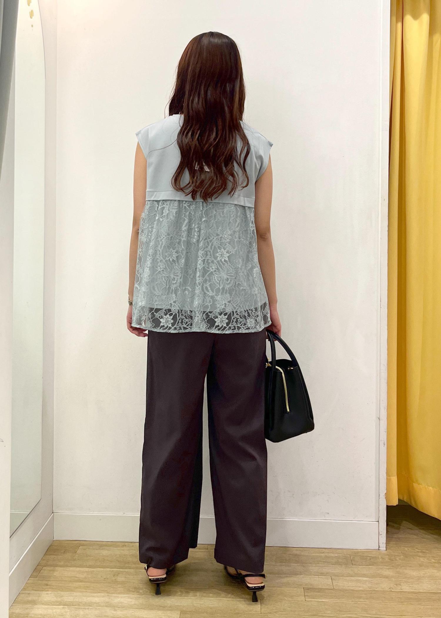 バックレースがオシャレな綺麗めカジュアルコーデ✨ミントグリーンも涼しげな印象になりオススメです♪