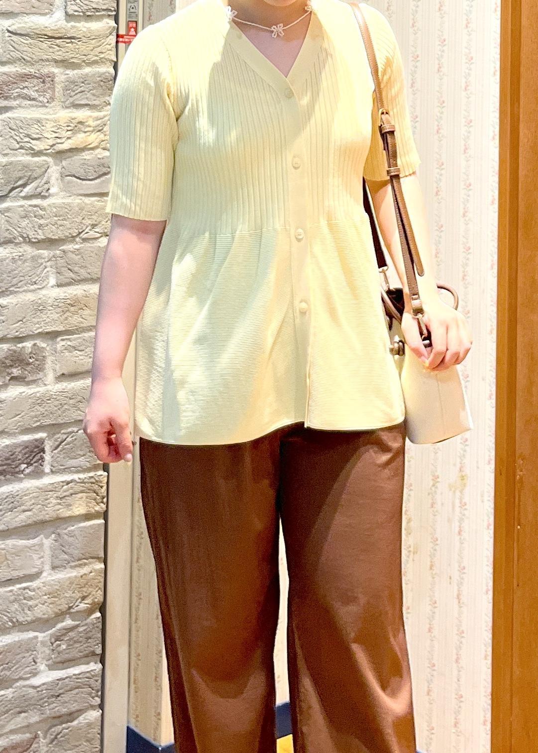 ペプラムカーディガンはシルエットがふんわりしつつフィット感があるので、着痩せにぴったりなアイテムです!