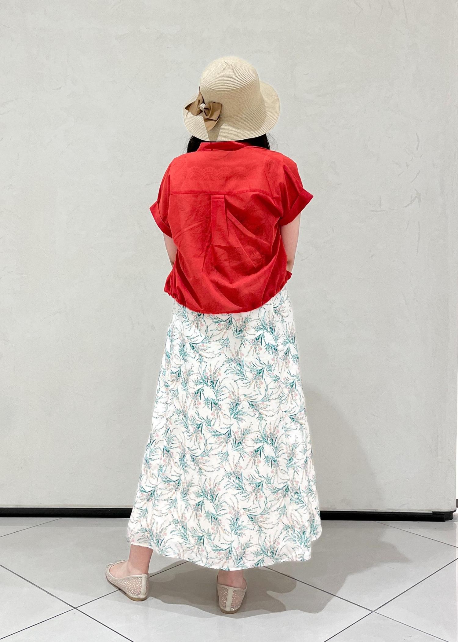 ROPÉ PICNICバルーンヘムシアーシャツレッド / 38¥4,499レビュー羽織るだけでぱっと明るい印象になります☀︎ドローコードで裾を絞っていただくと、今っぽい着こなしでスタイルアップにもなります☺︎