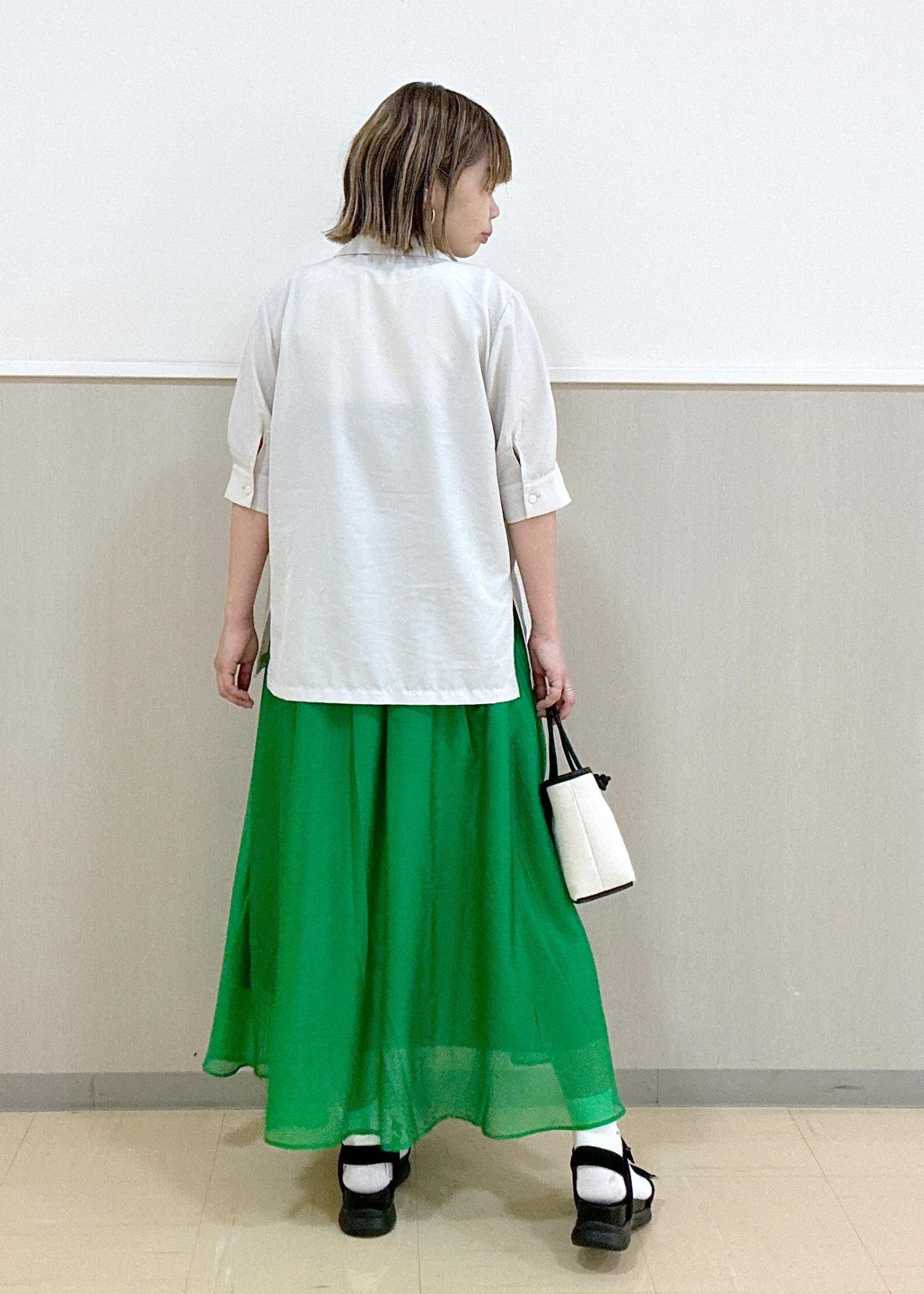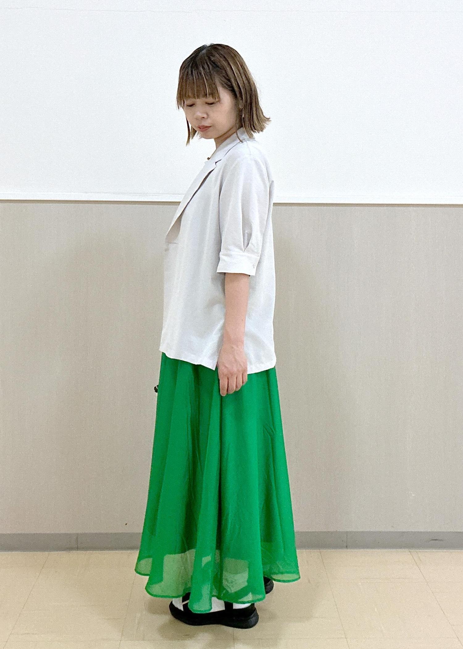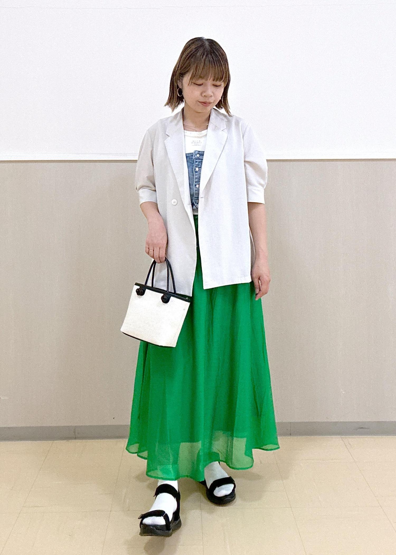 グリーンスカートの大人カジュアルなお出かけコーデ