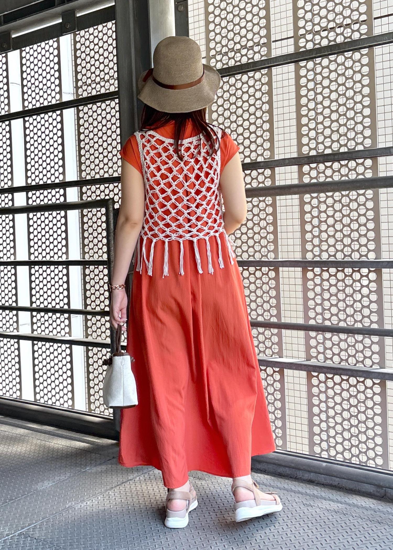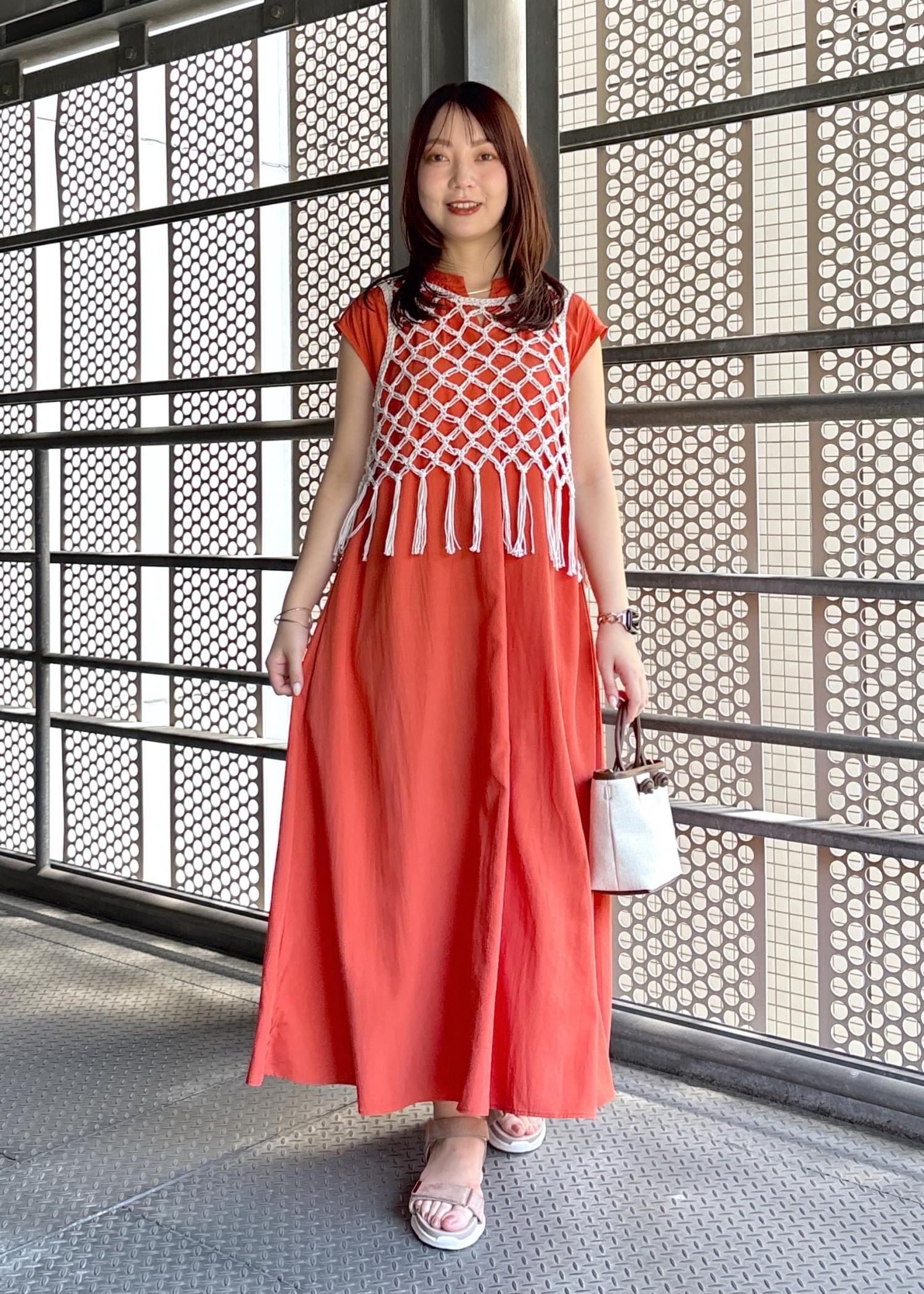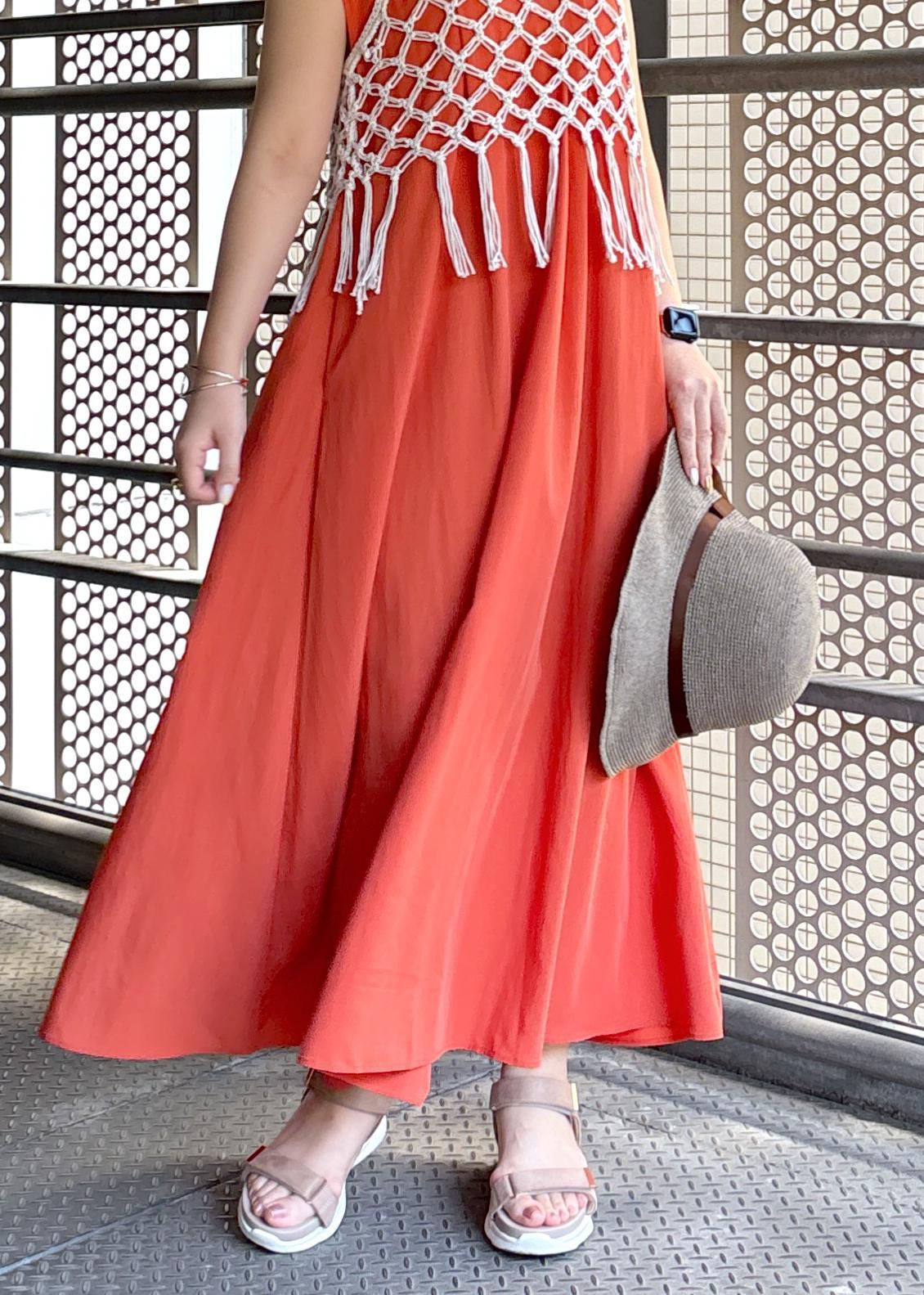 ROPÉ PICNICリラックススキッパーロングワンピースオレンジ / 38¥6,490レビューさらっとした落ち感のある素材で綺麗見えします。腕を上げた時に脇の空きが気になるので一枚インナー必須です。軽やかな着心地でリラックスできます。