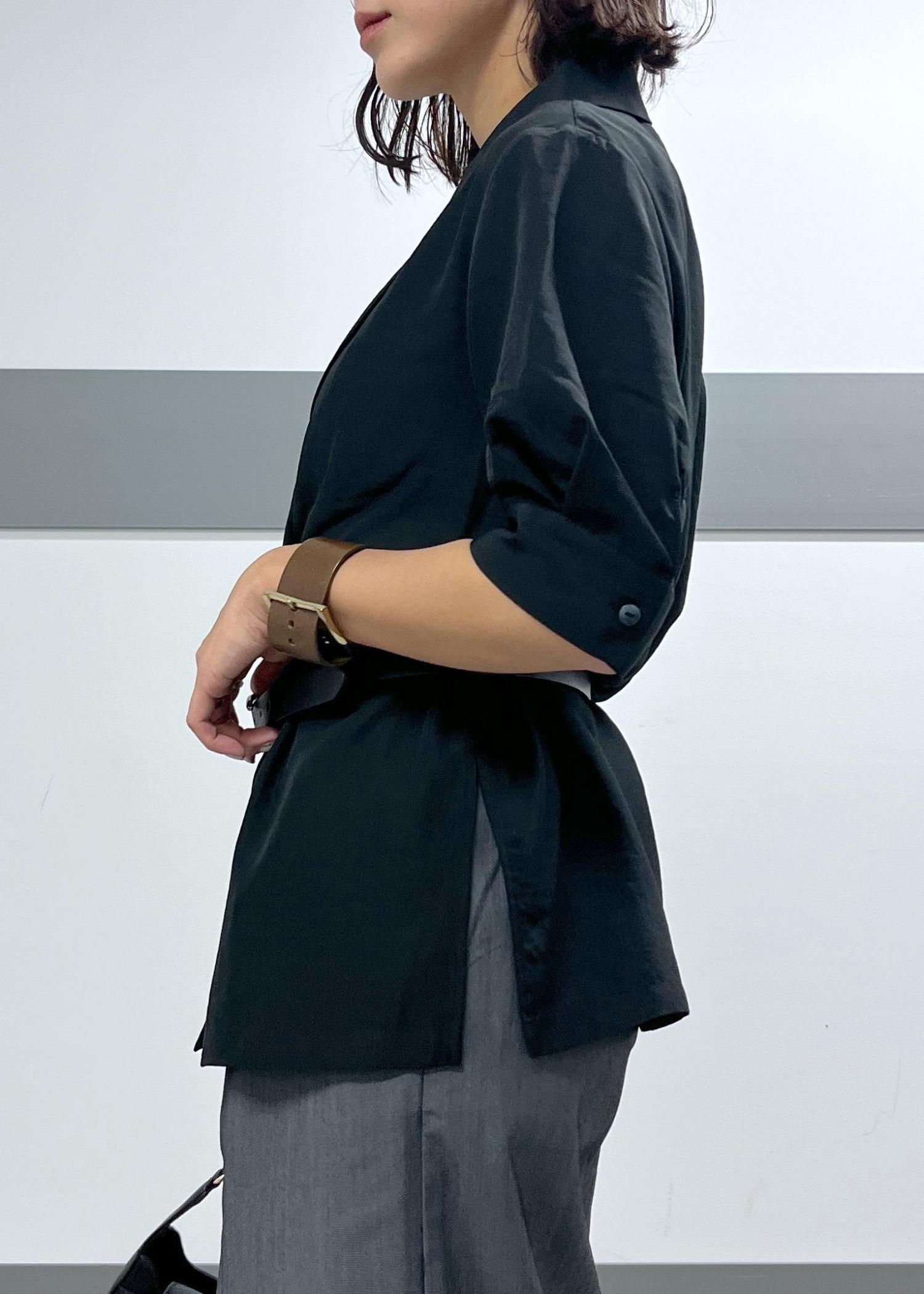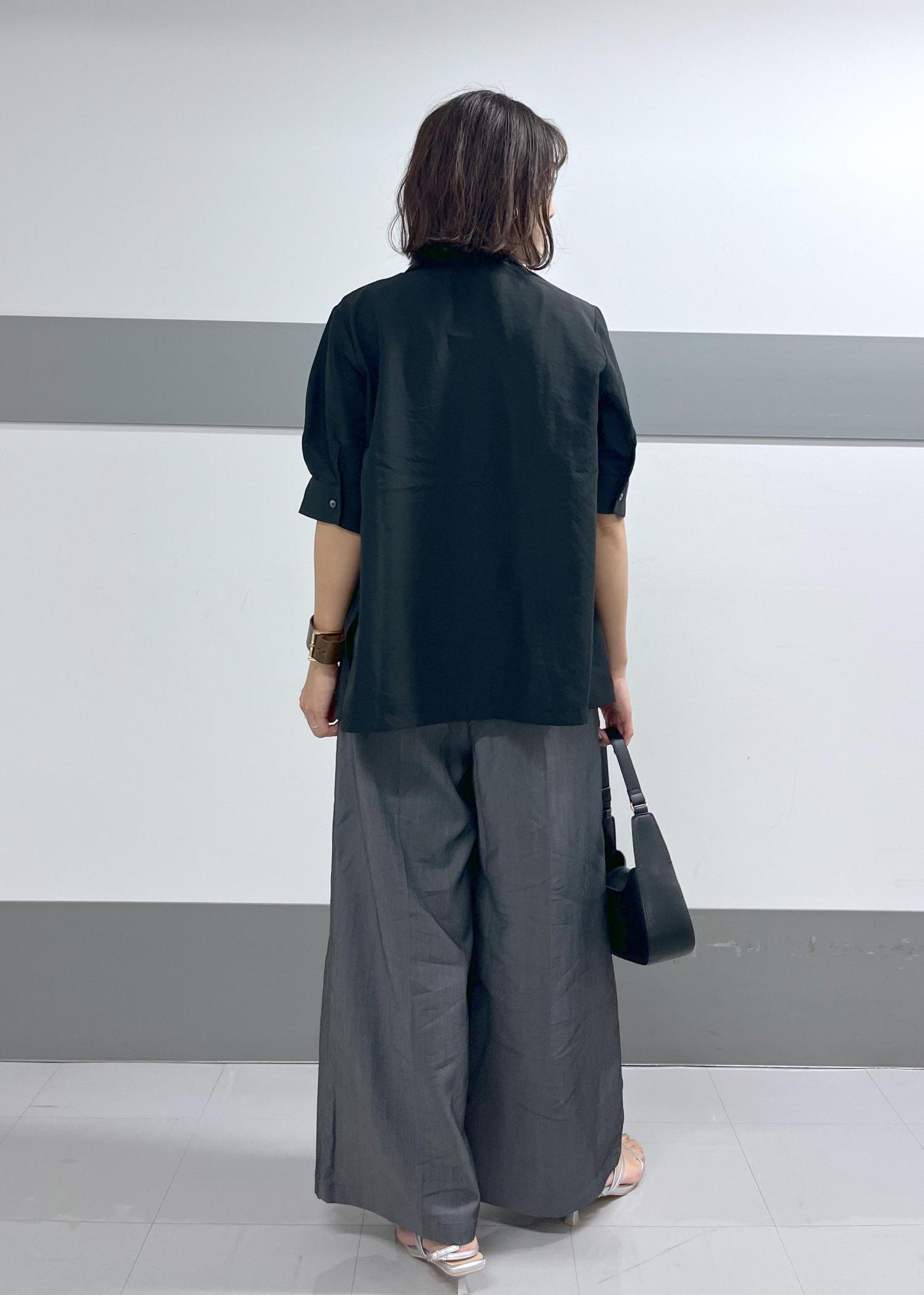 柔らかい生地感や袖のボリュームがさりげなく女性らしい印象を出してくれます。