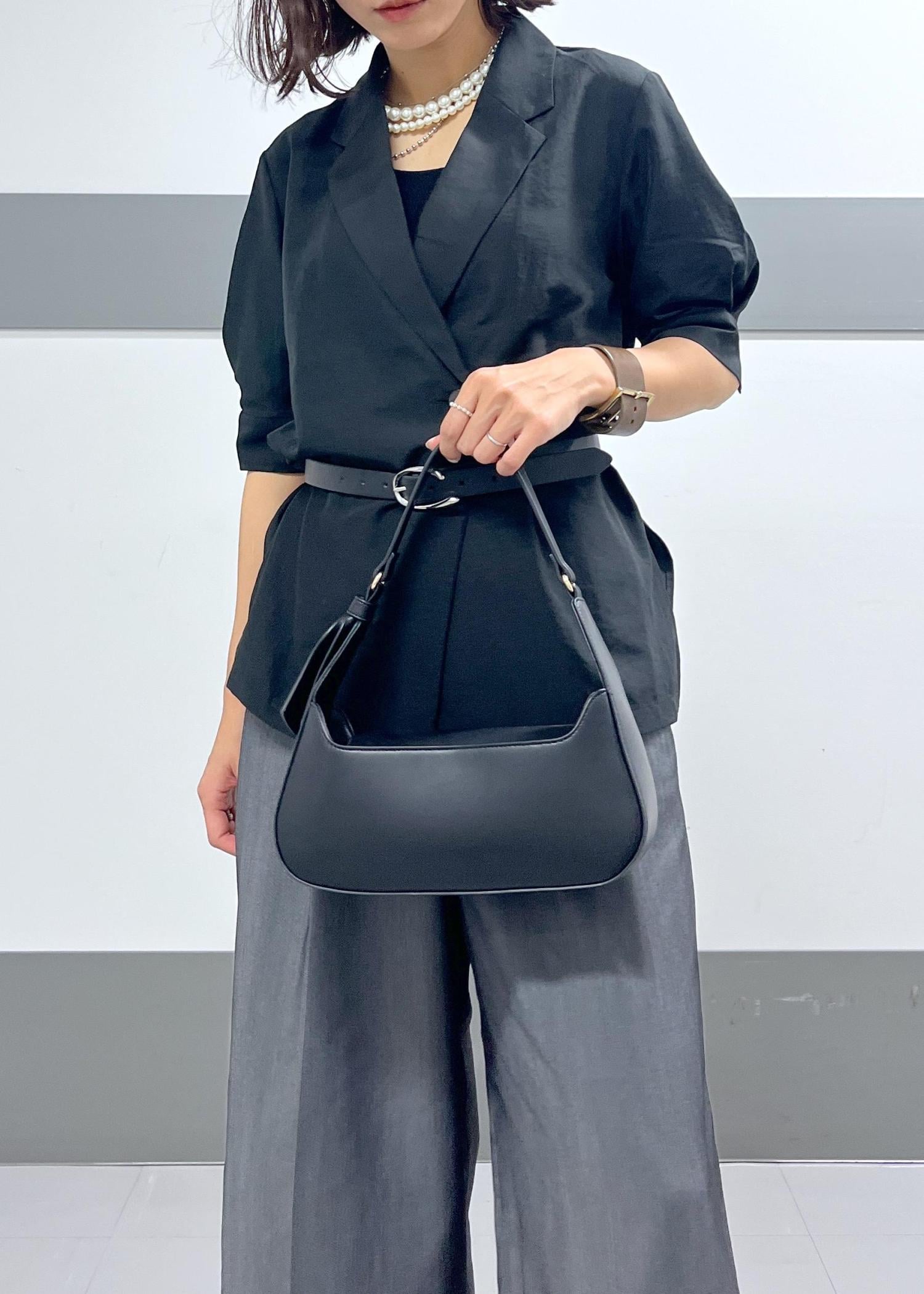 厚みがないデザインなので肩掛けして小脇に挟んでもすっきりとした印象です。
