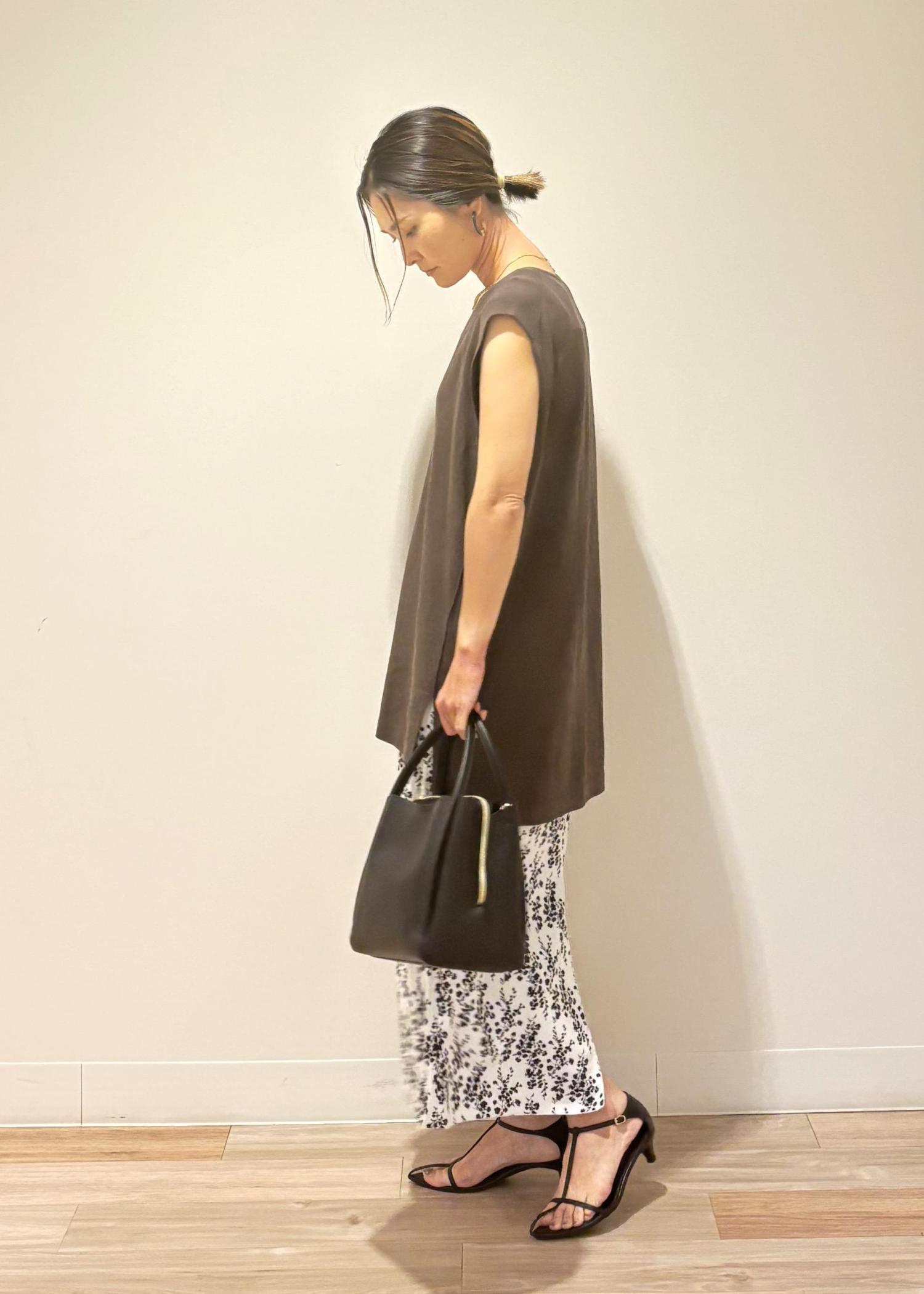 今回はタイトスカートを合わせて、綺麗なIラインシルエットを意識しています。