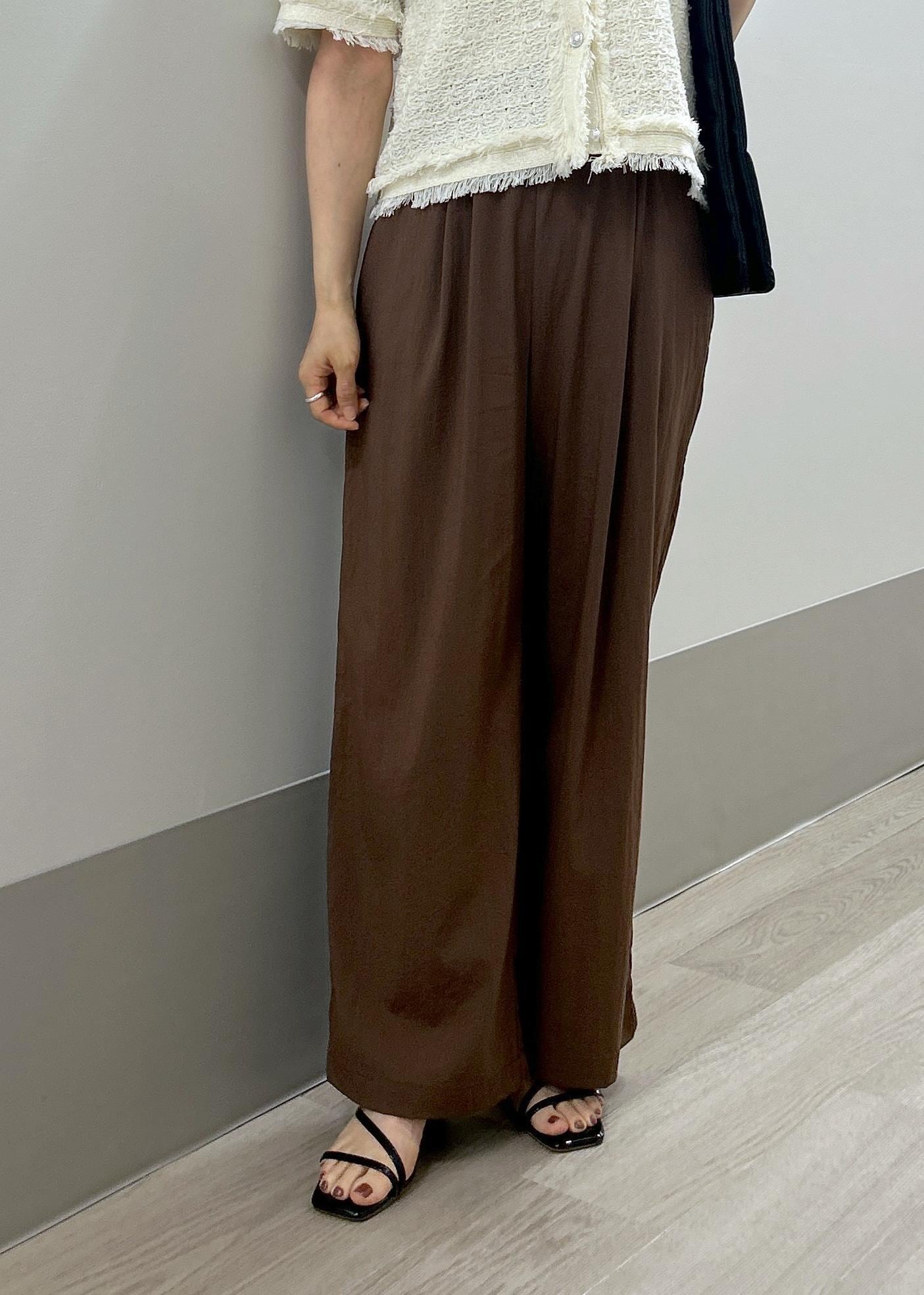 ウエストが総ゴムなので締め付け感なく着用できます。サラッとした素材感で夏でもストレスなくおめしいただけます。