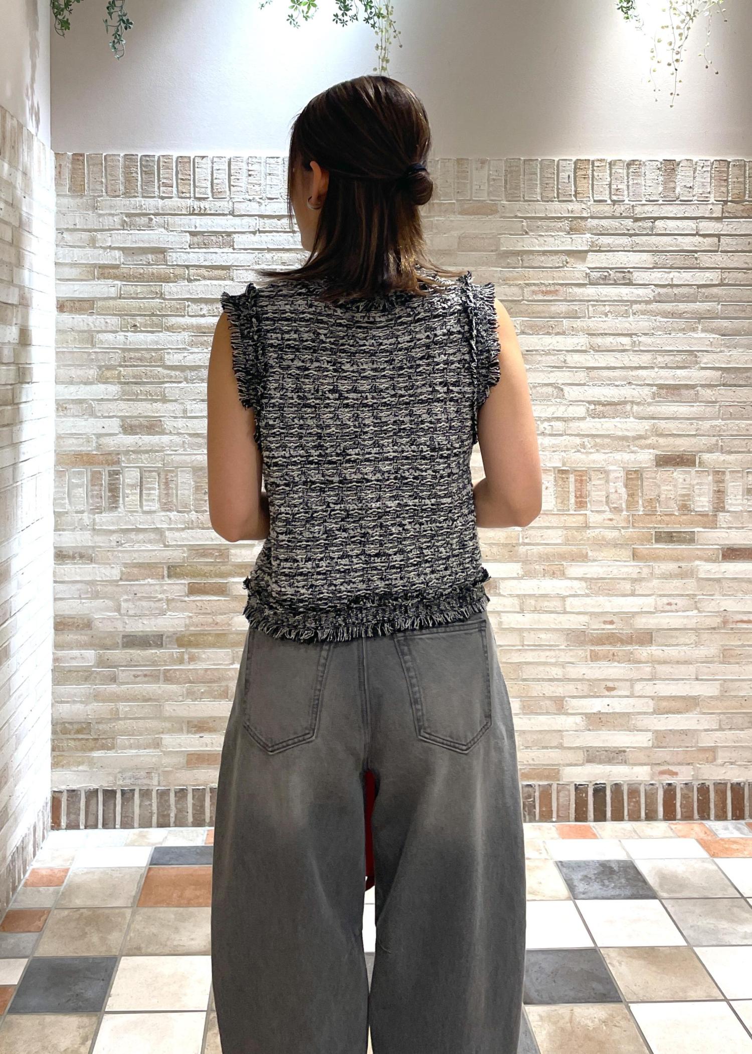 ROPÉ PICNIC【WEB限定カラー】【サマー・ツイード】着丈が選べるジレベスト/スリーブレスカーディガンブラック系 / 38¥4,994レビュー161cmで短丈を着用し、腰骨上あたりの丈感です。